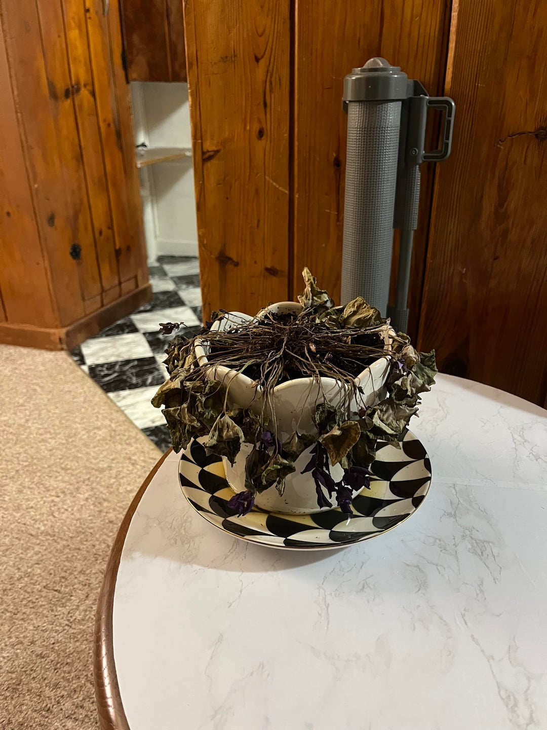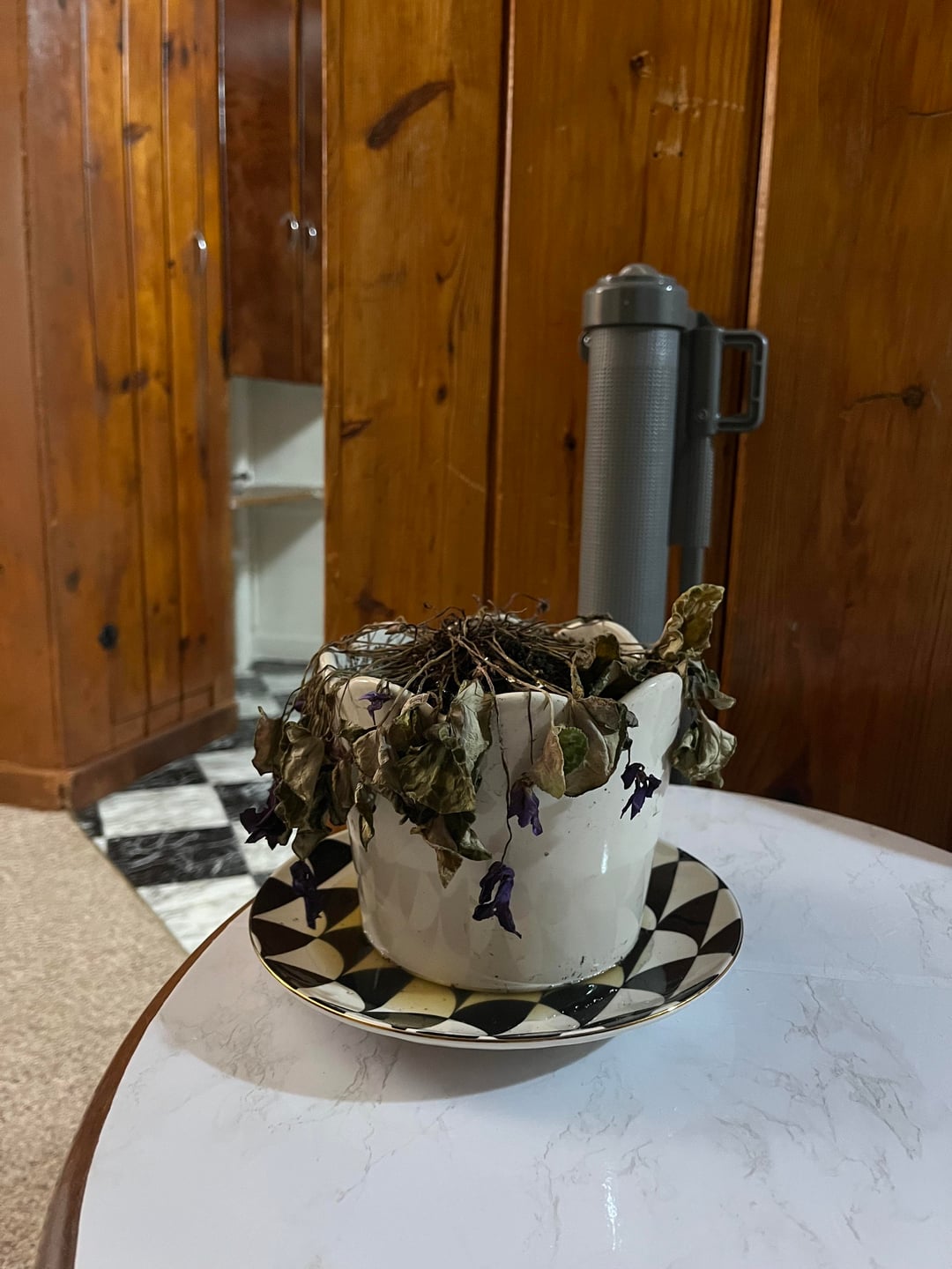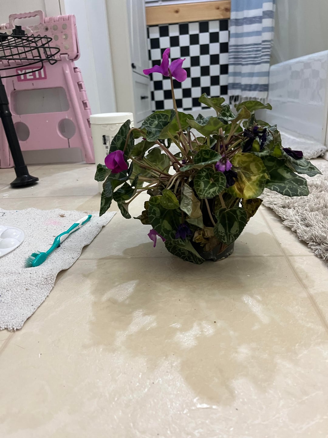 こんにちは!!このシクラメンは11月の誕生日にもらったもので、初めての観葉植物です(サボテン以外です!笑) 受け取った後、新しい鉢に植え替えることにしました、枯れた葉も取り除きました。土を変えて新しい土を追加するときは、根と同じ土をできる限りそのままに保ち、鉢を変えた後も水やりをしました。ポットの底には排水口が開いています。表土が乾いたら水やりをしていて、水はいらないと気づいたのでやめたのですが、それ以来枯れてしまいました。鉢に移した直後はしおれて自立しなくなり、劇的な植物だと聞いていたのですが、状況は悪化するばかりでした。今日、(写真に見られるように)乾いていたのでもう一度水をやりましたが、冬に咲く植物であるにもかかわらず、私の植物はほとんど枯れて悪化しているように見えます。家の中で植物に直射日光が当たらない場所をいくつか試してみました。ヒントや提案をいただければ幸いです。家の温度が高いことと何か関係があるのでしょうか?参考までに、最初に受け取ったときと現在の植物の写真を含めました。