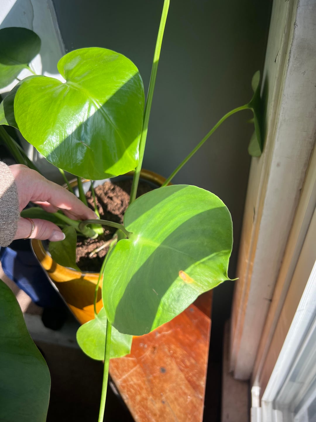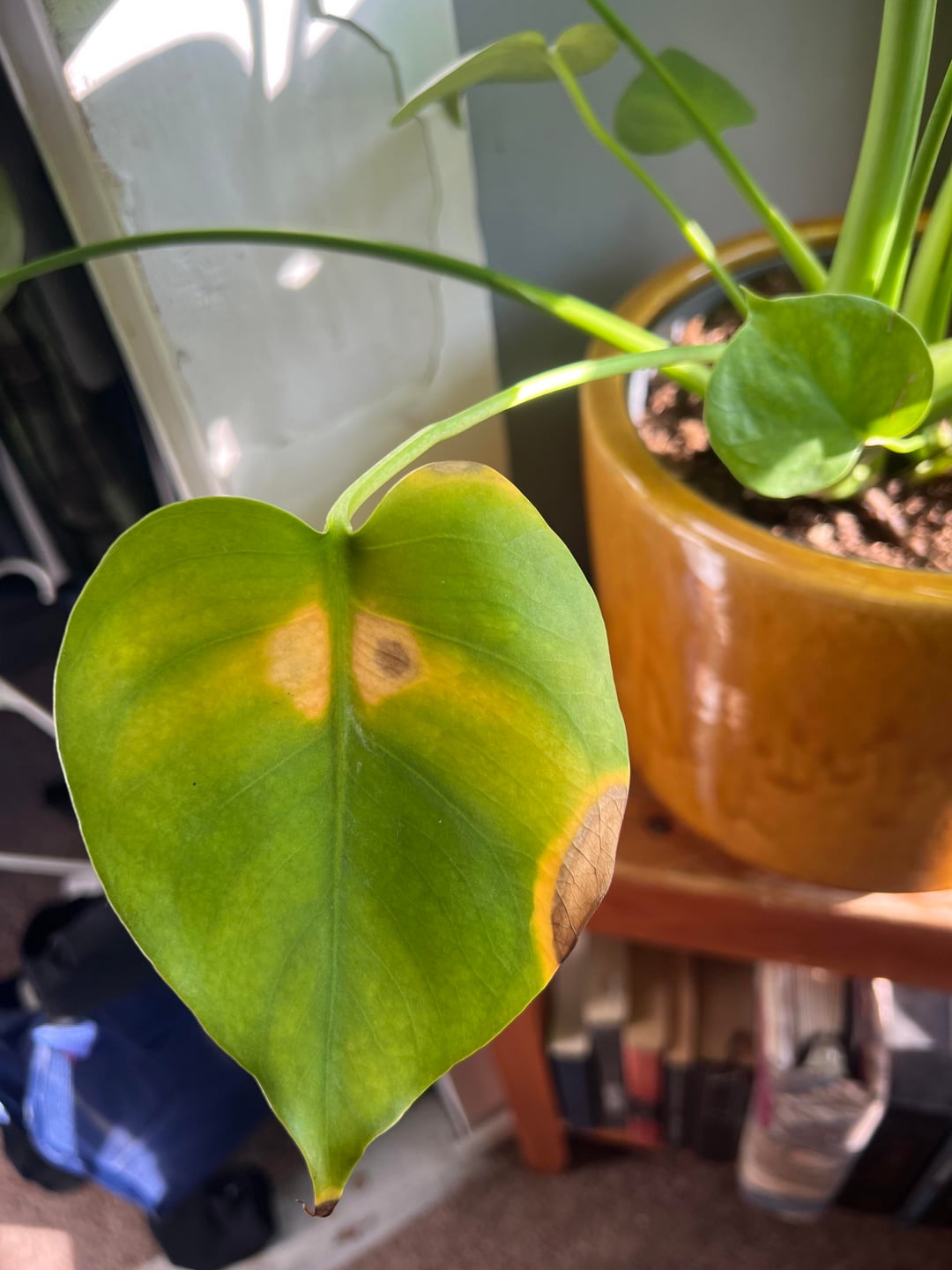 2か月ほど前に買ったモンステラに黄色い斑点ができ始め、葉の1枚がかなりしおれているように見えます。これは正常なことでしょうか、それとも植物に何か問題が起こっているのでしょうか?