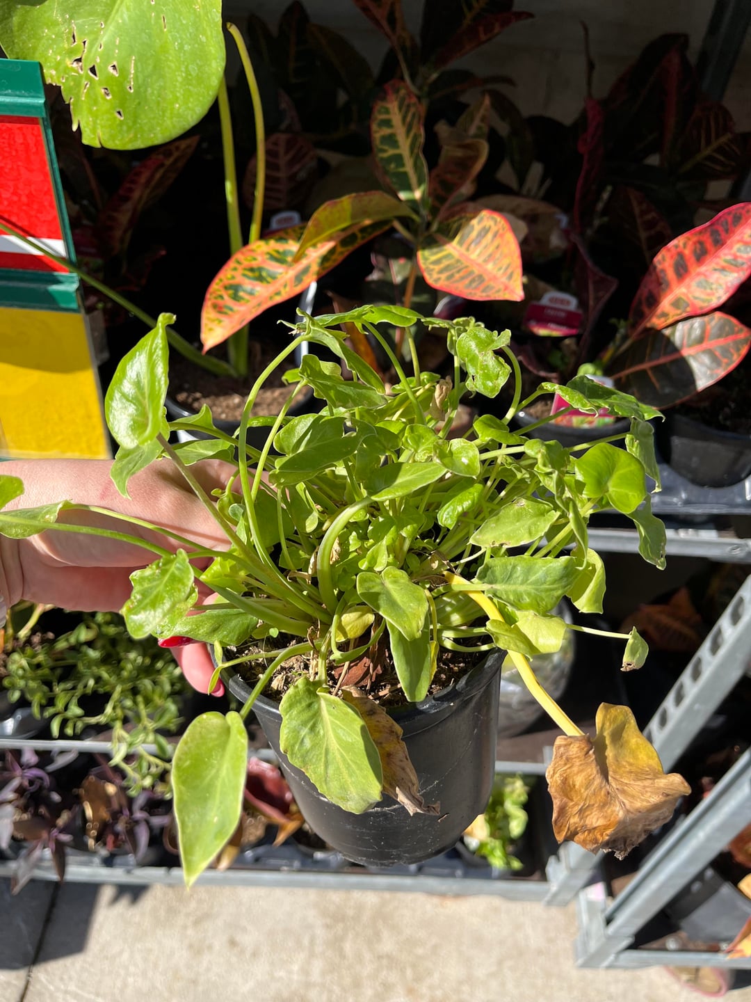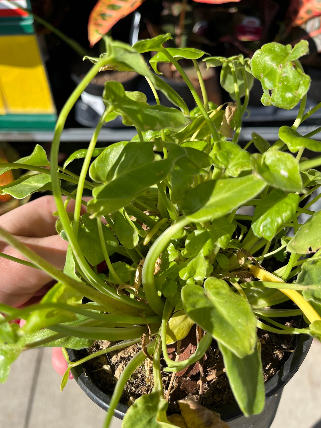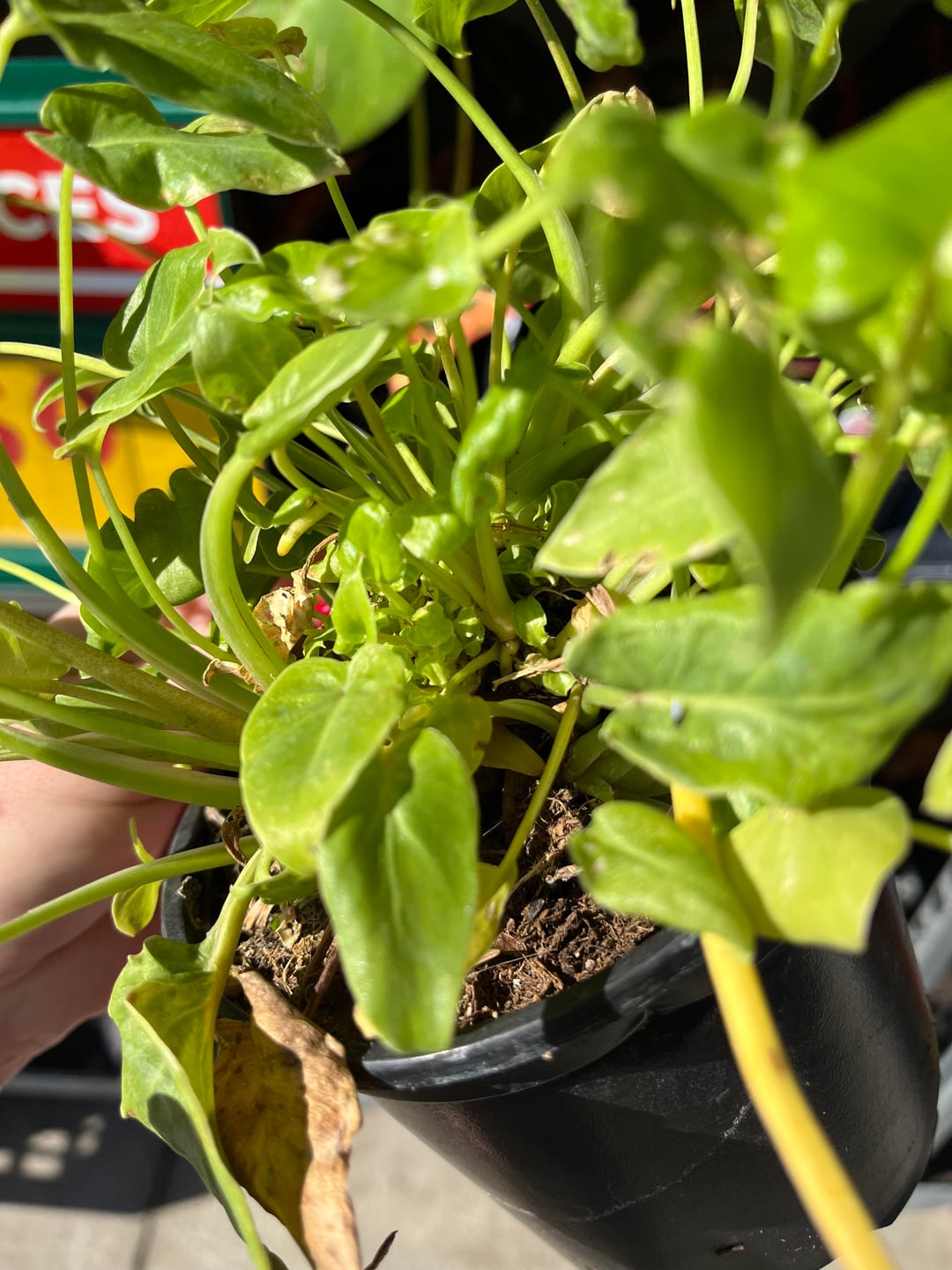 少し残念な見た目ですが、新しい芽が生えてきていました。地元のHEBで植物を観察していたときに見つけました。一般的な「葉の詰め合わせ」以外のラベルはありません 新しい成長がどのように「盛り上がって」盛り上がるかに基づいて球根または根茎を持っているように見え、主植物から離れてランナーが出ているように見えます