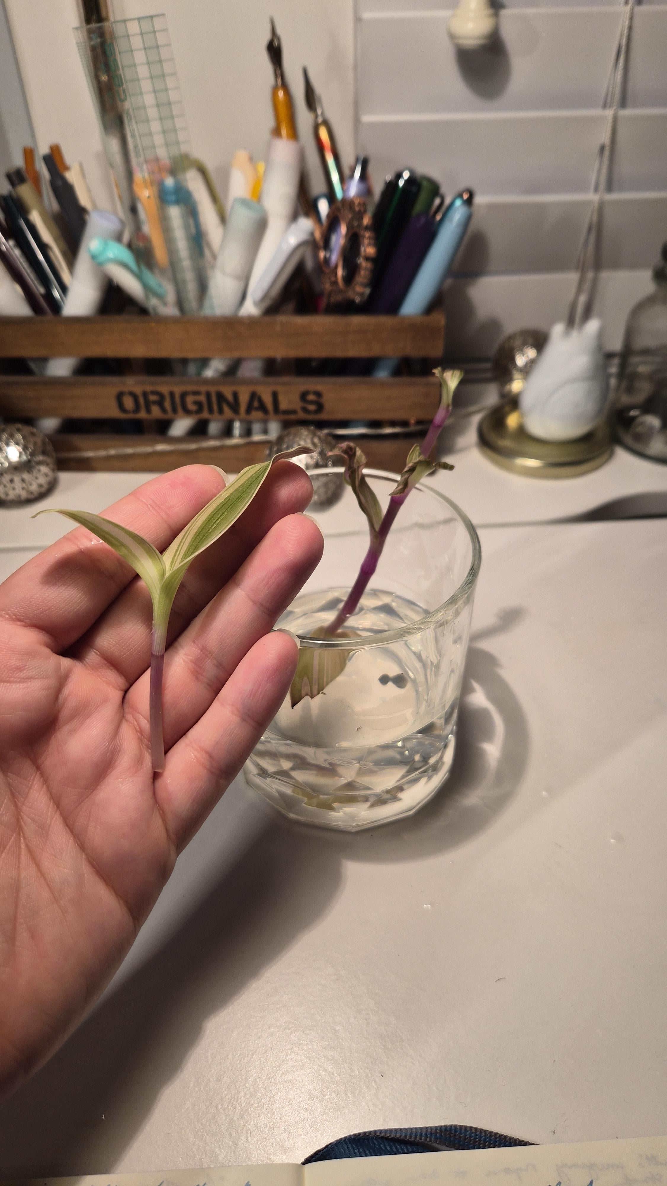 そこで母が観葉植物を2本あげたのですが、そのうちの1本が枯れかけています。休暇から戻った後、私は水に満足しすぎて、ムラサキツユクサ(?)はそれを好みませんでした。茎(カップに入っているやつ)だけ残しておこうと思ったのですが、ご覧のとおり全部枯れてしまいました。手元にあるものを保存する方法はありますか?植物の残りの部分はもうなくなってしまったので、母の私に対する敬意がかかっています:( ご意見がございましたらよろしくお願いいたします。