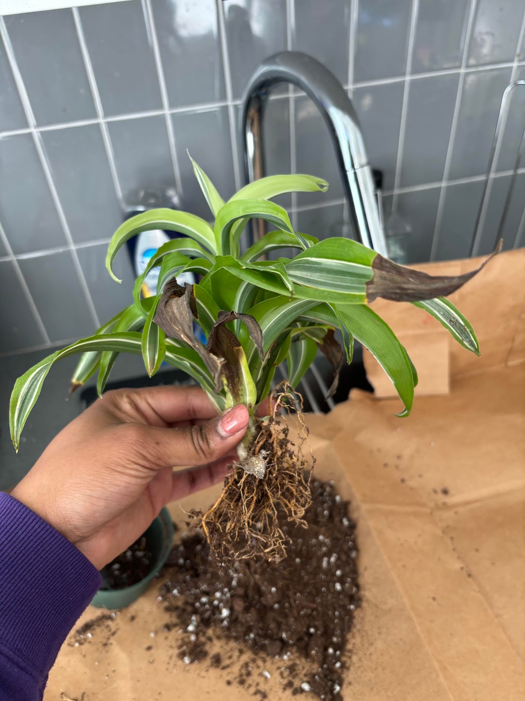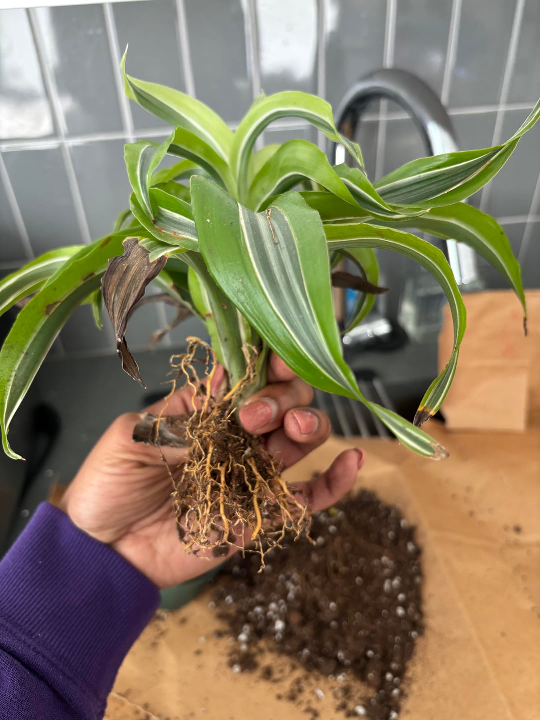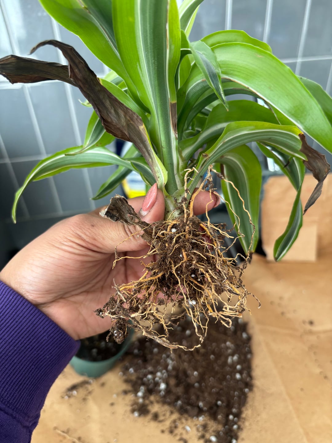 葉の様子から根腐れが考えられます。これらの根はすべて悪いのでしょうか?