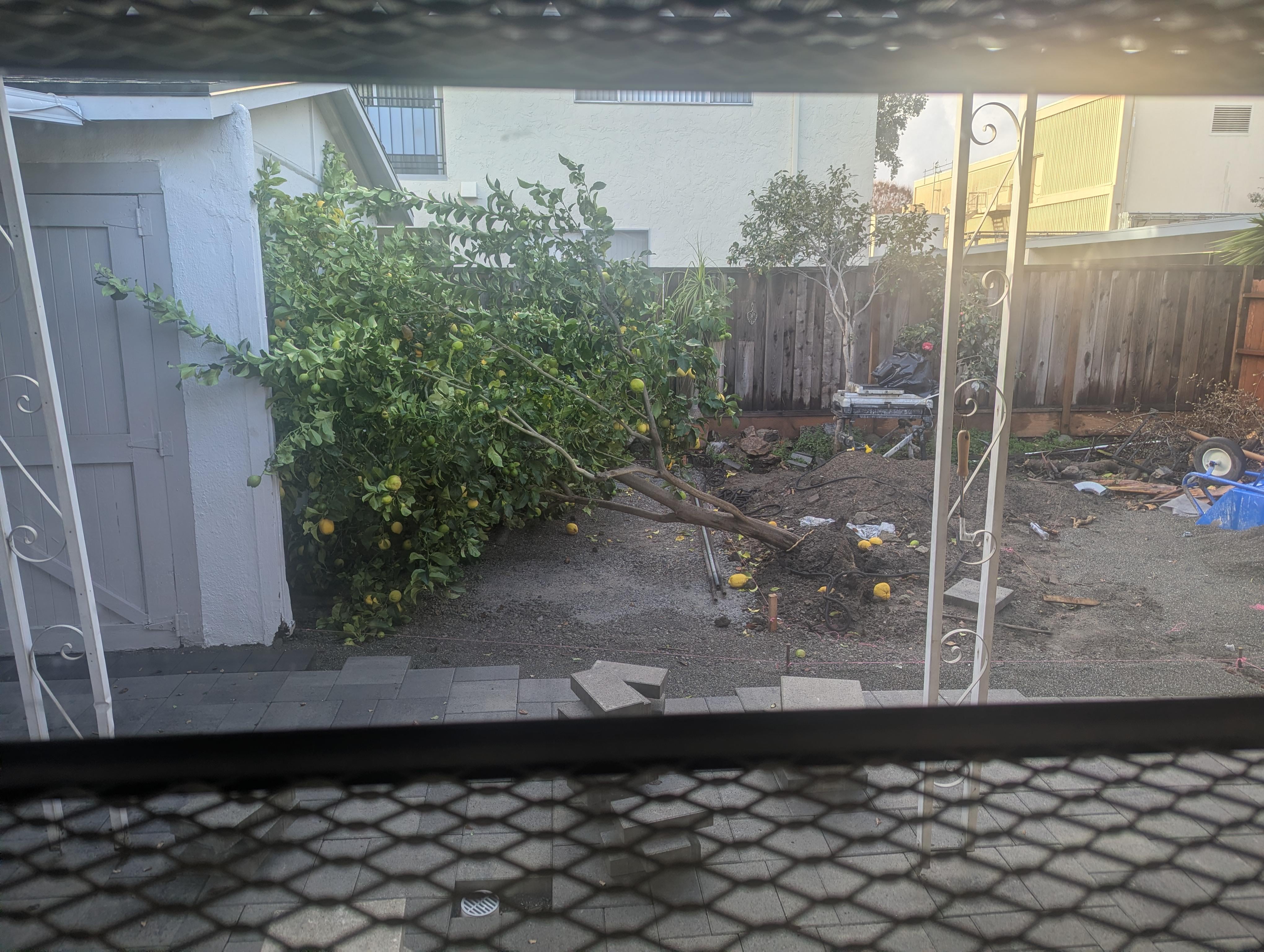 皆さん、楽しい休暇をお過ごしください!カリフォルニアで目が覚めると、レモンの木が倒れていました。最近雨と風が降り始めたので、適切にトリミングできませんでした。この木は保存可能ですか?とにかく再配置することを検討していたので、トリミングして再配置して希望を持てるでしょうか?それとも8ですか" トランクは間に合わないでしょうか?私たちが引っ越してきたときもここにあり、前の所有者は庭のことにはるかに熟練していました。ありがとう :)