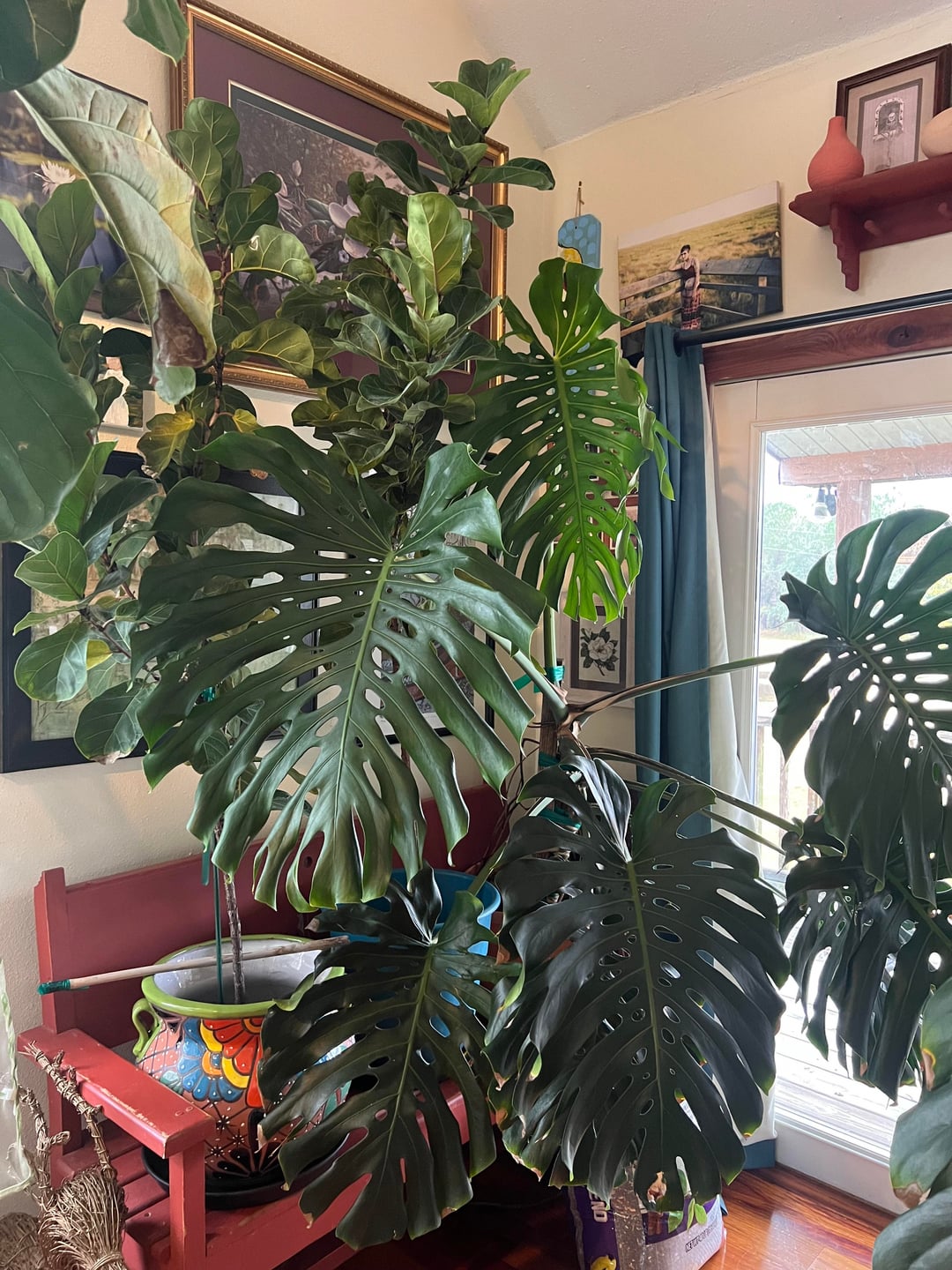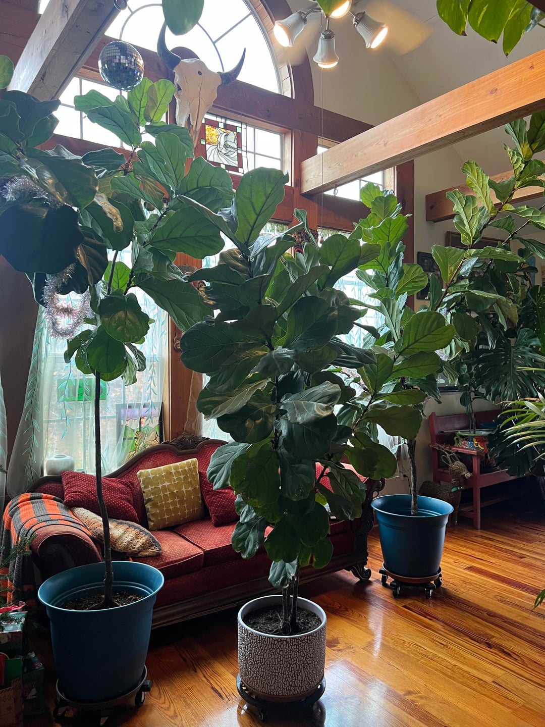 私の5つのフィドルリーフイチジクと2つのモンステラ。