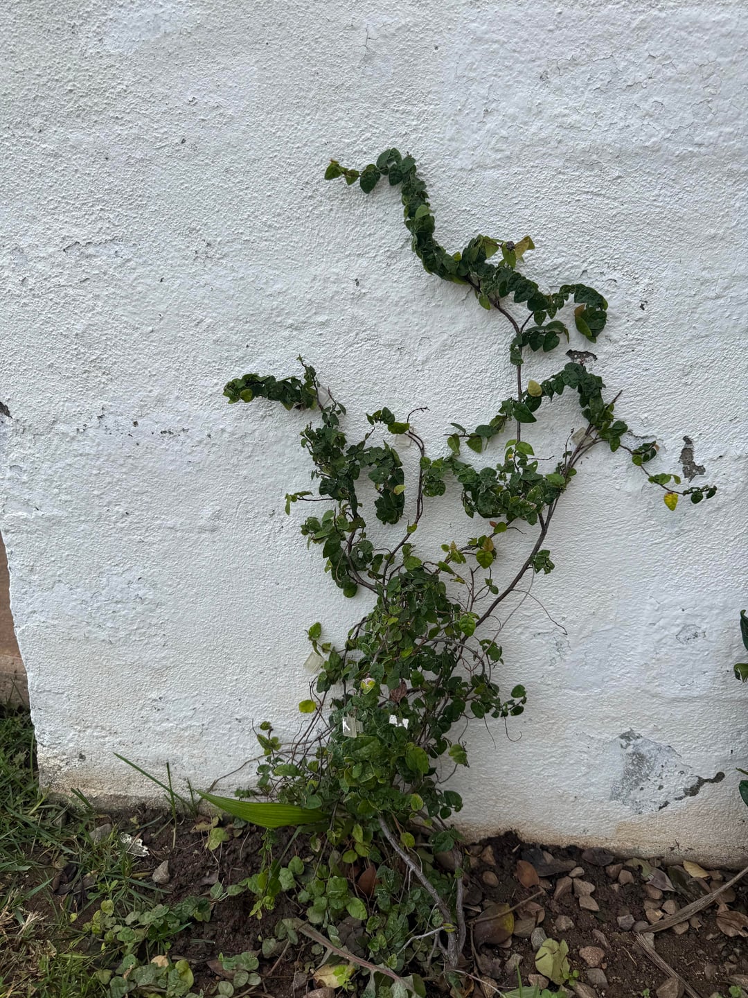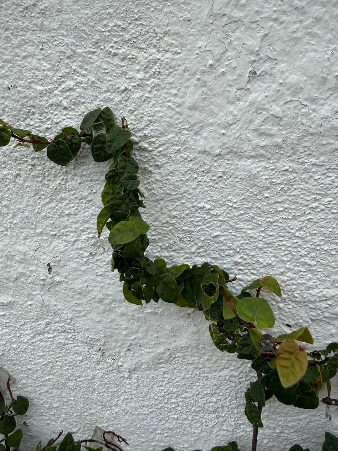 私はこの匍匐性イチジクを半年以上飼っていますが、この壁にくっつくことができず、成長することができません。理由がわかりません。葉も枝に巻き付いていることに注目してください。一貫して水が与えられます(私の芝生の近くでは、週に約3回水が与えられます)。 植物は健康そうに見えますが、成長していないだけです。 忍び寄るイチジクの専門家で何が起こっているのか知っている人はいますか?