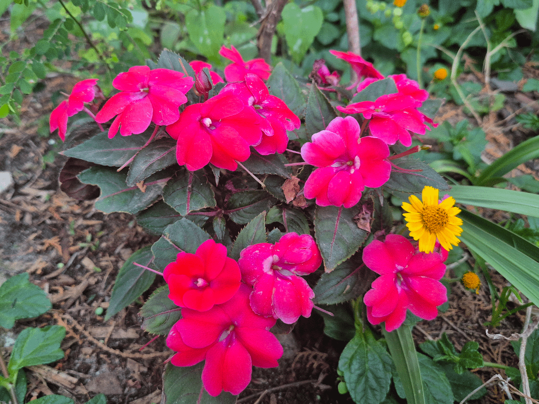 素晴らしいサンパチェンスの花が咲きました(念のために小さなデイジーも)