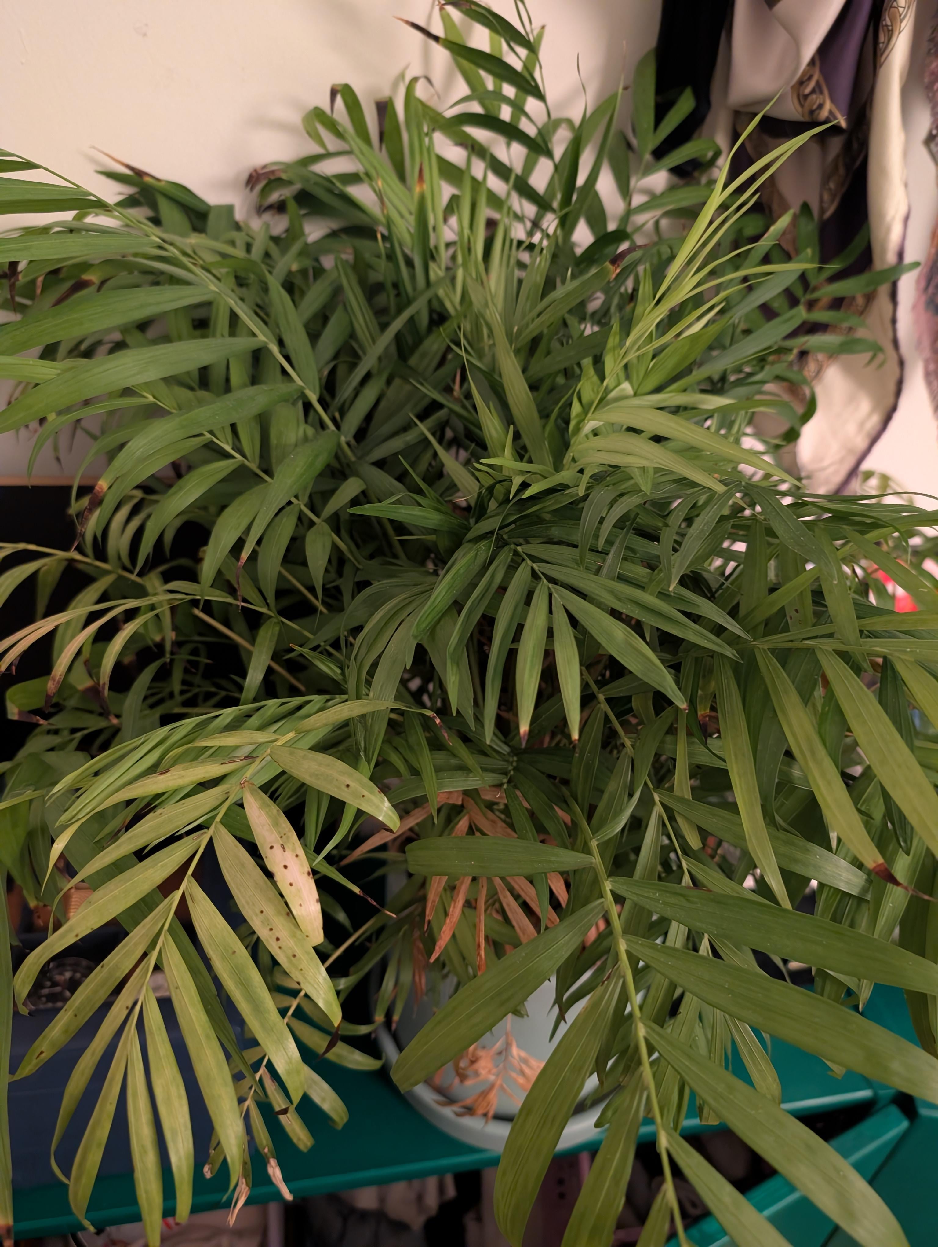 南向きで窓から少し離れた部屋で、週に一度水やりをしています(妻は時々カーテンを開けるのを忘れるので、おそらく効果がありません)。部屋の湿度は加湿器の調子が悪くて50~60%程度に保たれていますが、時には25~30%まで下がることもあります。かなり定期的に、しかし非常にゆっくりと新しい葉を出しており、今は黄色くなっています。もっと頻繁に水をやるのは躊躇します。