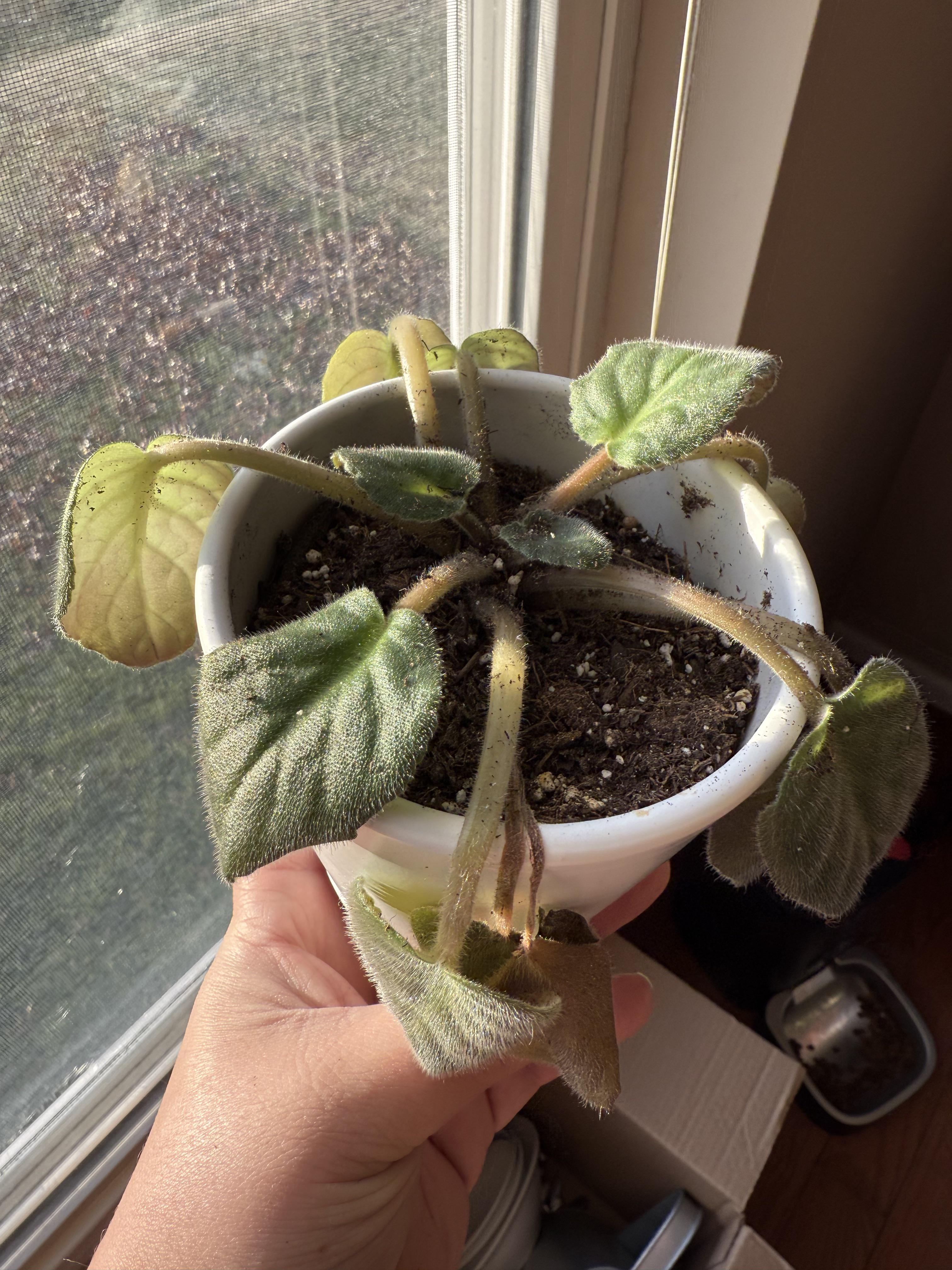 継母は、母の植物から挿し木して育てたこのアフリカン バイオレットを私にくれました。私はいつも観葉植物が苦手なのですが、これは水や土の改善でしょうか? TIA
