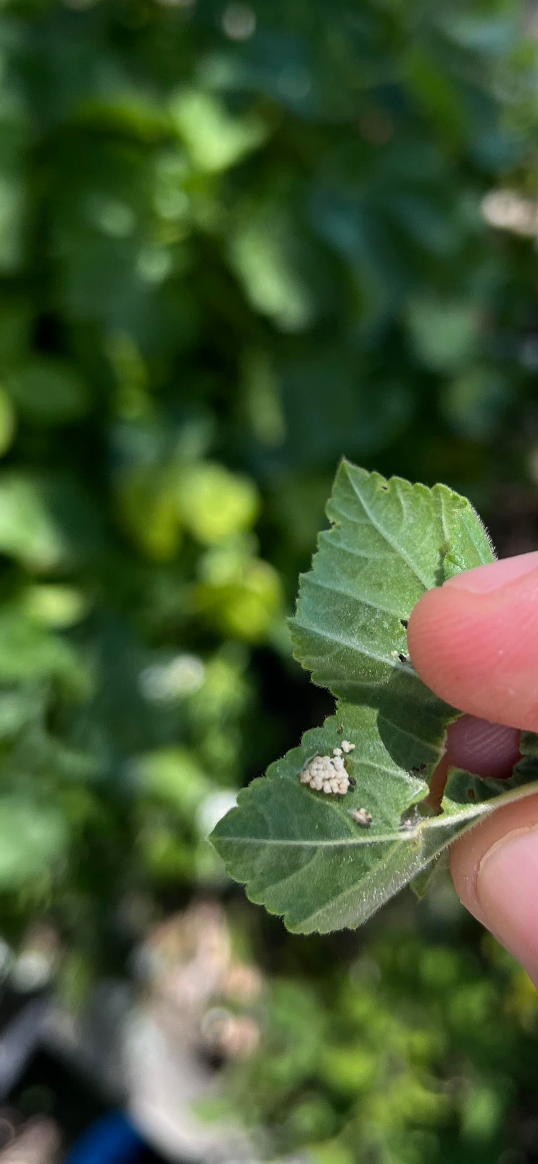 皆さん、私が育てている葵の葉の味を楽しんでいるのは一体誰なのか、誰か教えていただけないでしょうか。やや最近のことですが、昨日私も若い葉の下に小さな卵の塊を見つけました。助けていただければ幸いです:)