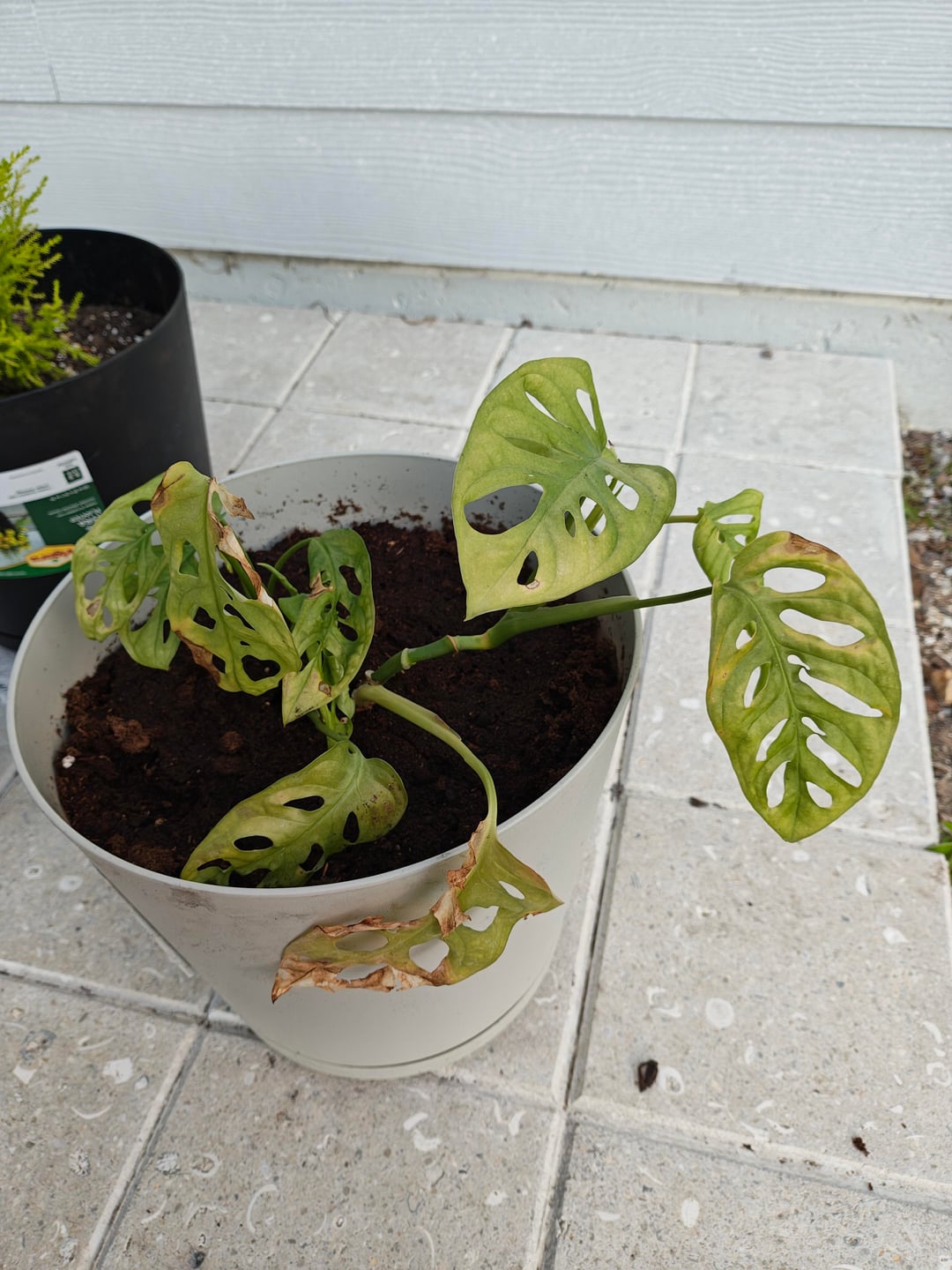 こんにちは、私はここ数か月間、このスイスチーズの植物を育てようとしています。鉢が小さすぎたので2回植え替えましたが、常に枯れる状態になっているような気がします。自分が何をしたのか、何が間違っているのかわかりません。私はフロリダ北中部 (ゾーン 9a) に住んでいます。現在、表土、ピートモス土、パーライトを混ぜたもので鉢植えにしています。土を湿らせた状態に保ち、表面が1〜2インチ乾いたら水をやります。ヒントをいただければ幸いです。よろしくお願いします。 😊