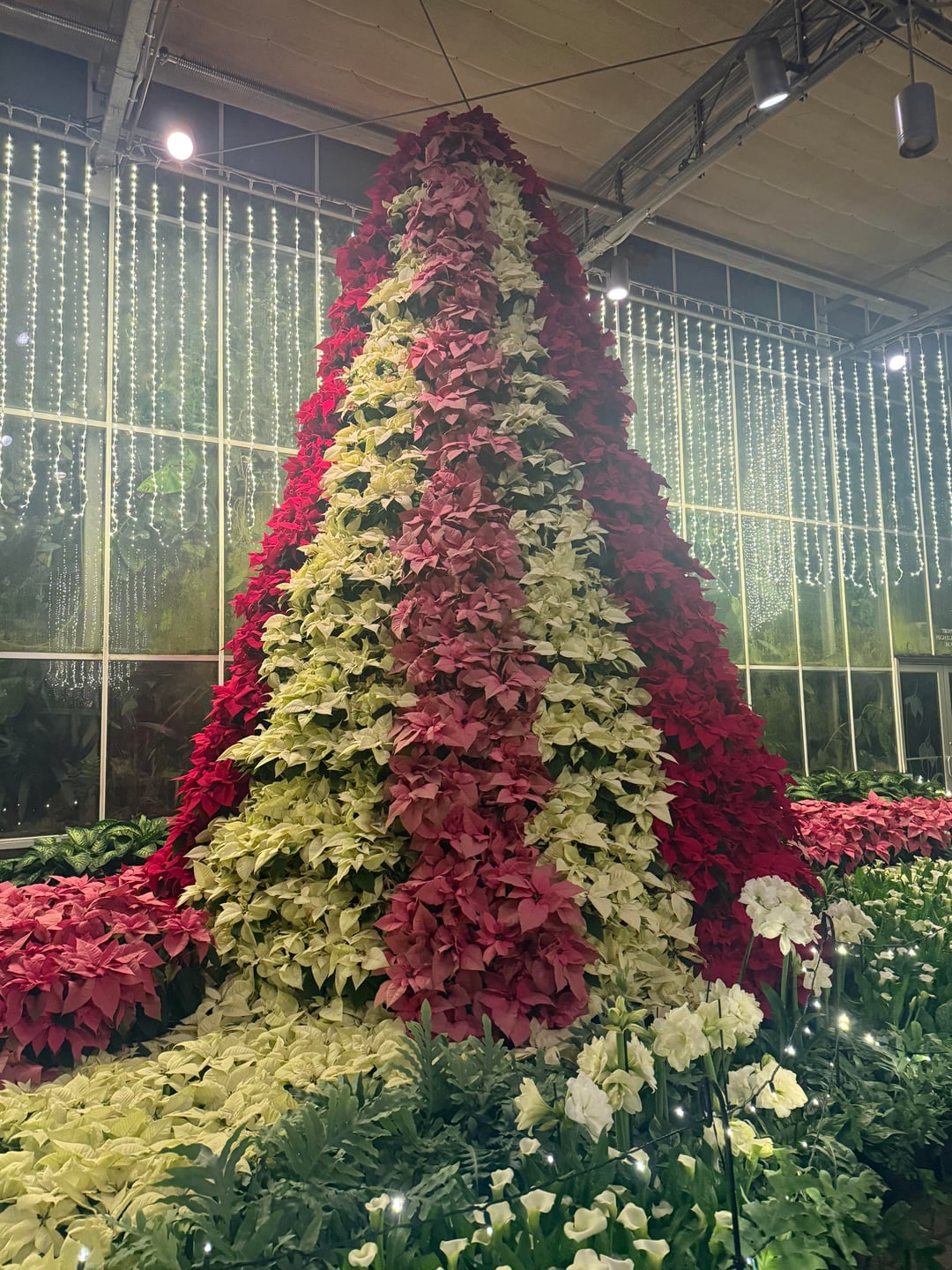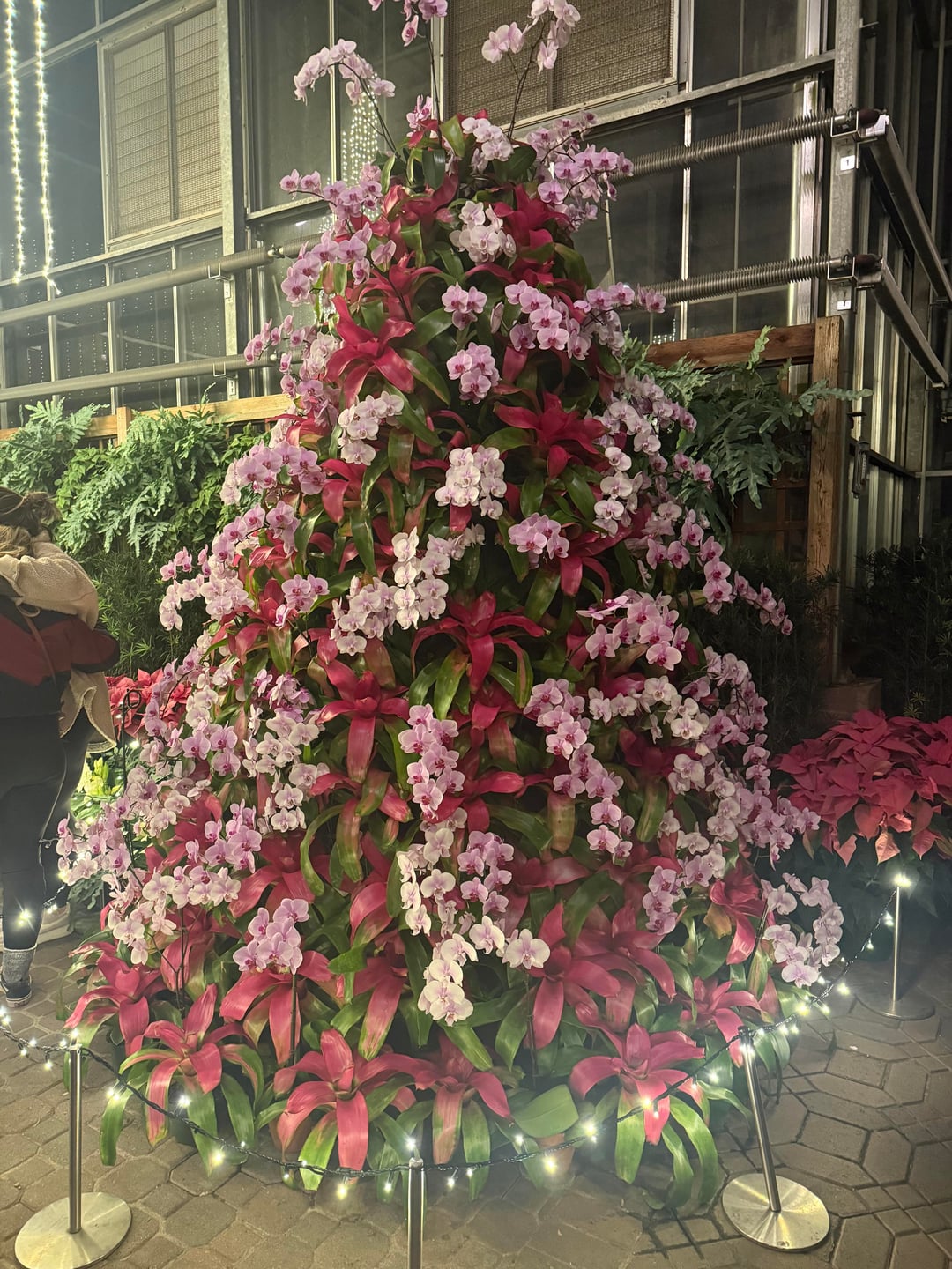 ポインセチアと蘭で作られた見事なツリー!