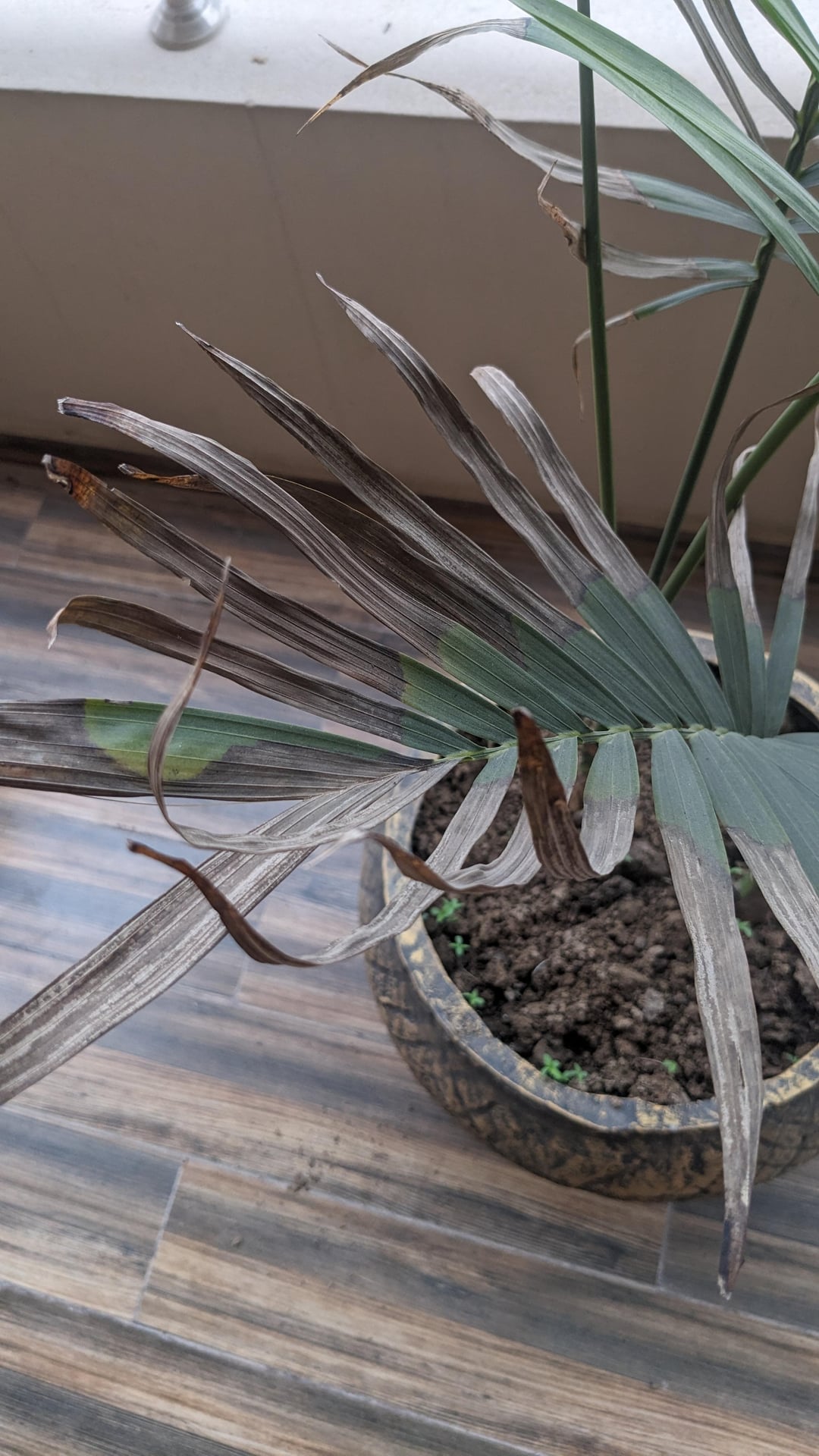 それで、私はしばらく前にこの植物を購入しました、そしてそれは枯れ始めています、それは主に間接的な日光の下にあります、そして私は土壌が試しているように見えるときに水をやりますが、理想的には週に一度です。 保存するのを手伝ってください。