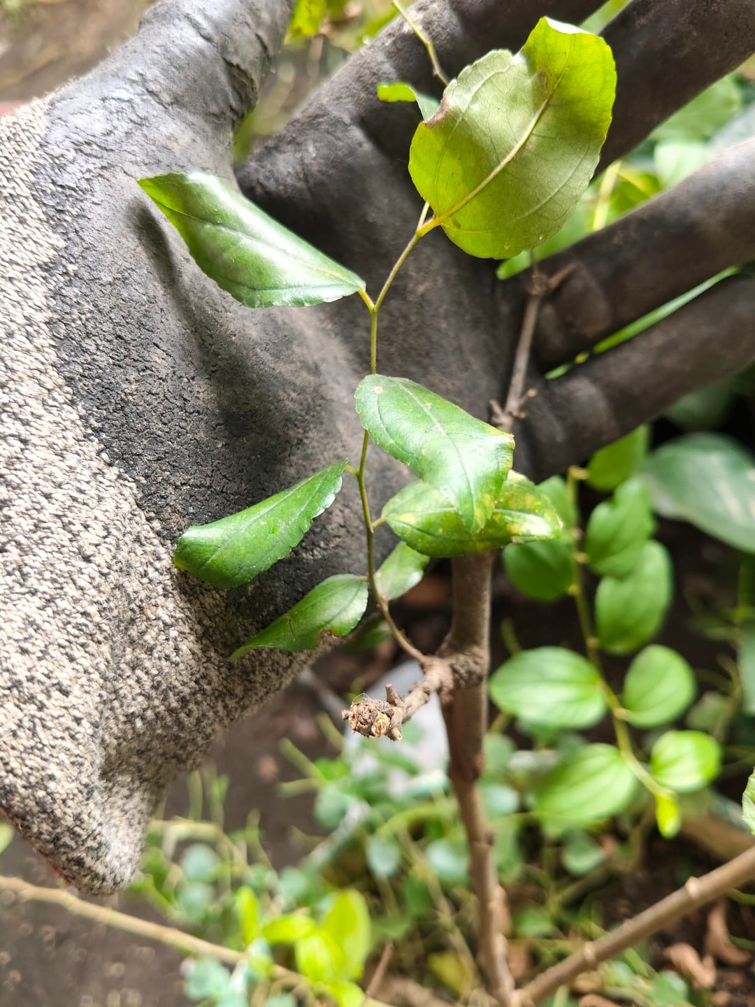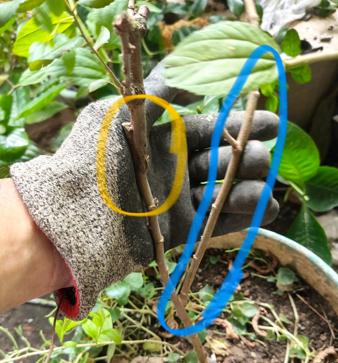 こんにちは。私の接ぎ木タイガートゥースナツメ(黄色でマークされているもの、葉は2枚目の写真です)について誰か助けてください。私はこの植物を1年以上育てていますが、接ぎ木に小さな成長しか気づいていません。しかし、台木は独自の枝を伸ばし続けました(青色でマーク)。以前から切り続けていたのですが、追いつかず大きな枝が伸びてきました。