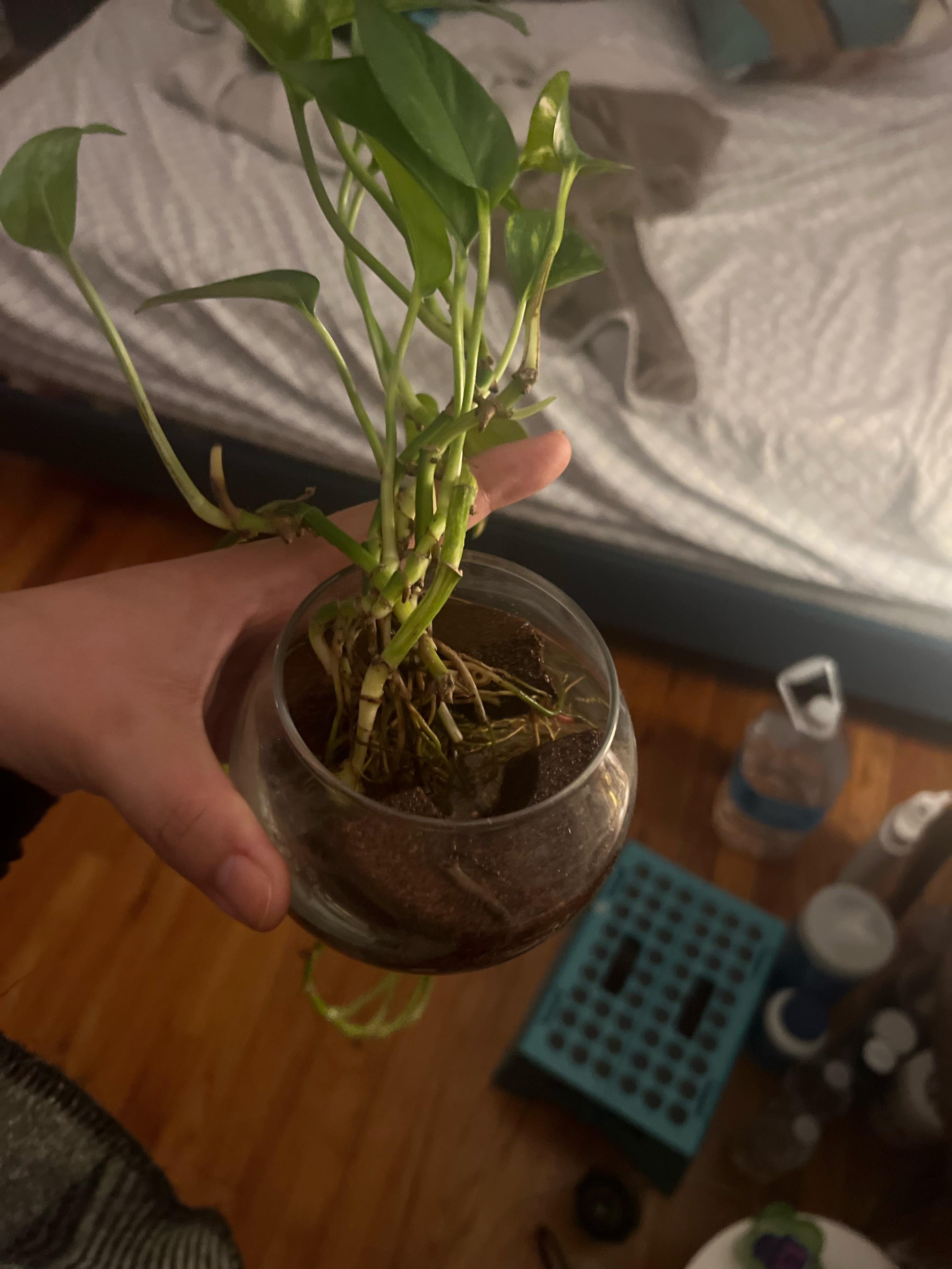 こんにちは!私はここでは初めてで、アドバイスを求めています。小さな丸いガラスの容器にポトスを水耕栽培しています。もともとは 2 つのスポンジ/コルク状の部品 (ワインボトルの栓に似たもの) で支えられていましたが、数年間水に浸した後、劣化して沈んでしまい、上部が開いた状態になり、植物が支えられなくなりました。