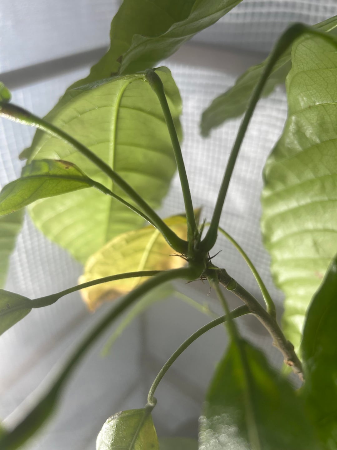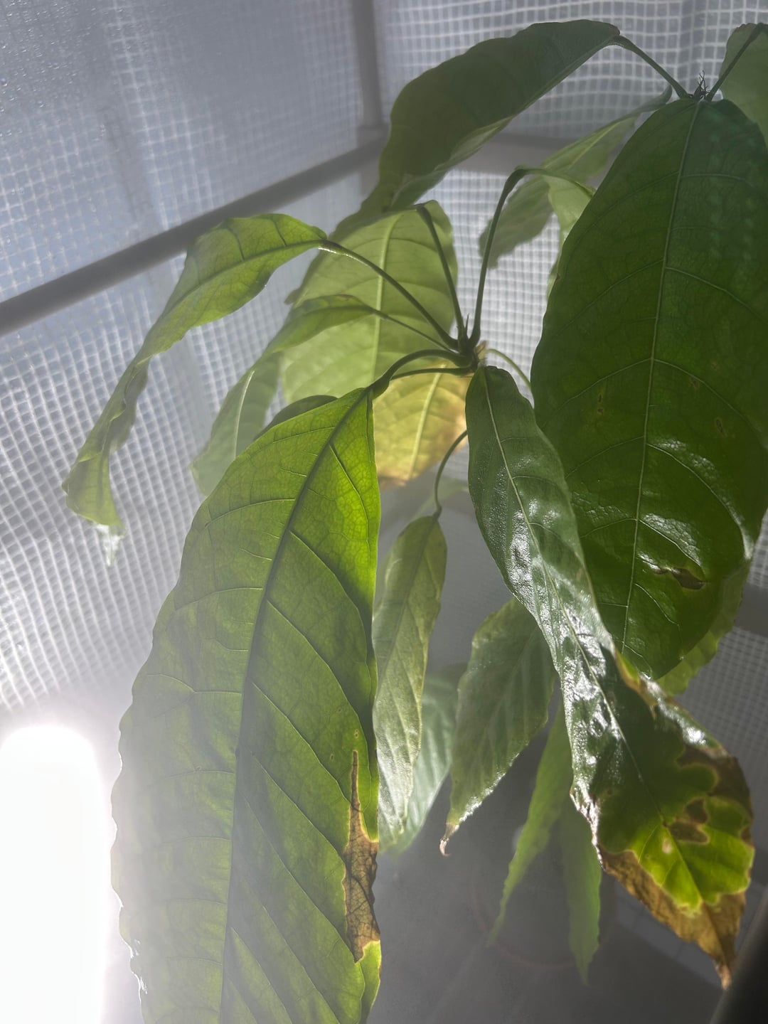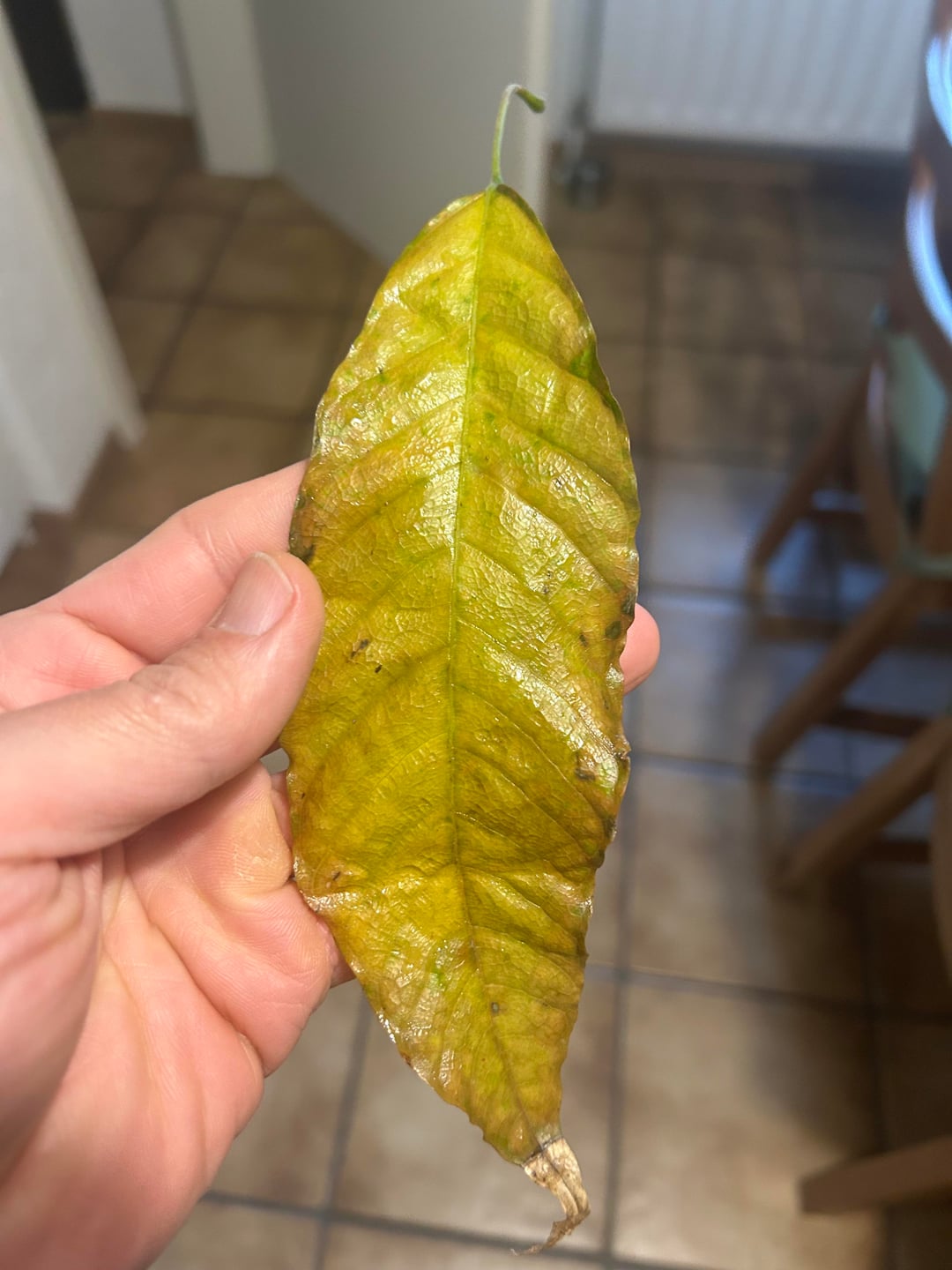 やあ、みんな!私の息子はサンタさんからカカオの木をもらいました(トリニタリオ、もうすぐ2歳)が、あまり良くないのではないかと少し心配しています。多くの葉はきれいに見えますが、中程度の大きさの葉が1日に1枚程度落ちています。私たちは非常に初心者の庭師です。私たちはドイツに住んでいるので、現在植物は屋内の小さな温室にあり、加湿器とヒーターが付いています。本日、LEDライトを追加しました。植物の様子の写真と、今日落ちた葉の様子の写真を掲載しました。新しい成長を優先するため、通常のサイクルの一部として葉を落としているのでしょうか?助けてくれてありがとう、息子はプレゼントに大喜びです!