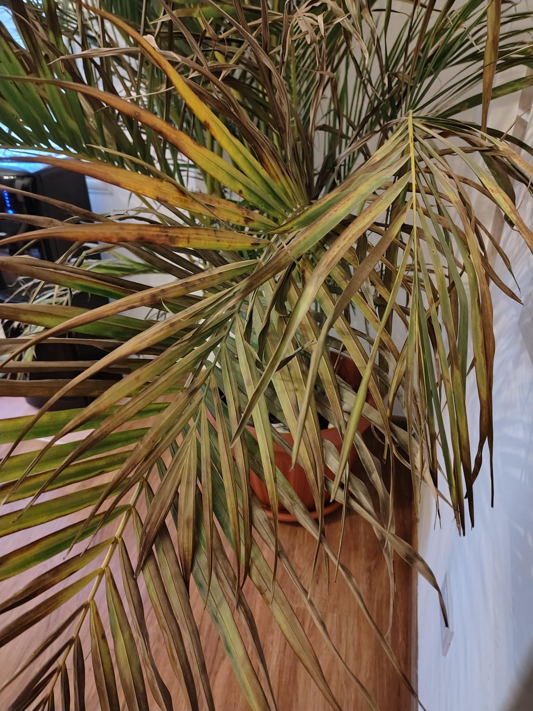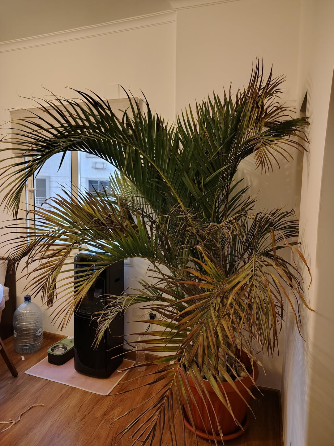 このアレカヤシを約3〜4週間前に入手しました。最初はとても緑色でしたが、多くの葉が突然茶色/黄色になってきました。それは植物店から購入され、彼らがヤシを入れていた小さな鉢からこの大きな鉢に移植したものです。 Chatgptは、これは移植ストレスであり、最終的には安定するはずだと述べた。これは本当ですか?それを保存するために何かできることはありますか?
