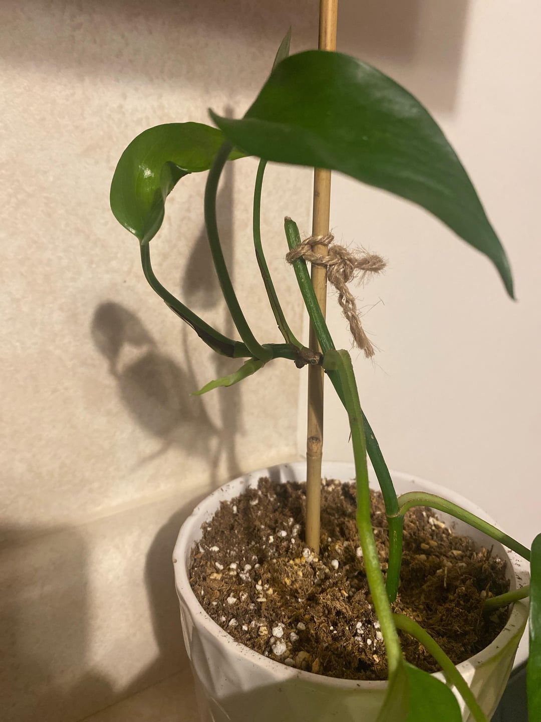 私はこの植物で水を支えるノッチクリップを何度も試み、現在は主茎が1本だけになっています。 私はそれがうまくいくととても確信していました。 初めて3/4インチの根を見つけてポットに入れました。 彼らは死んだ。 2回目はもう少し待ちました。 前回は根がすごく伸びて、新しい葉が出てくるところまで育てました。 その後、母株があった鉢に移しました。 みんな丸まって茶色くなって死んでしまいました。 • 用土:多肉植物ミックスを自家製ミキサーに混ぜ、パーライトを少し混ぜ、その上に苔を敷いた培養土を混ぜます。 • 肥料:春には有機植物調の肥料を与えます。 • 水やり:しばらくは上から水やりをしていましたが、土が固まりすぎているように感じられるよう、下から水やりに切り替えました。 間違いなく役に立ちました。 水やりはとても控えめにしています。 月に1回くらい。 • 照明: 今は冬で窓が寒いため、間接光は控えめにします。 • サポート: メイン (のみ) 茎に麻ひもが付いた竹の棒。 もっと成長するにはどうすればいいですか? この最後の茎を小さな部分に支柱を立てるべきでしょうか?