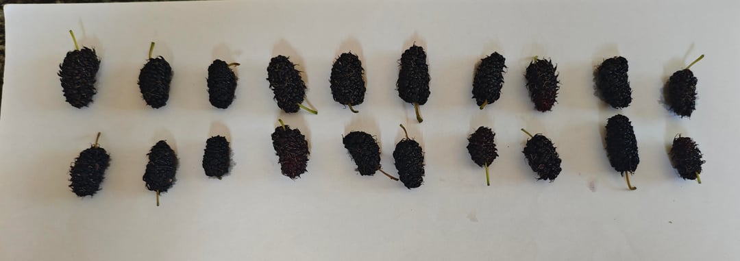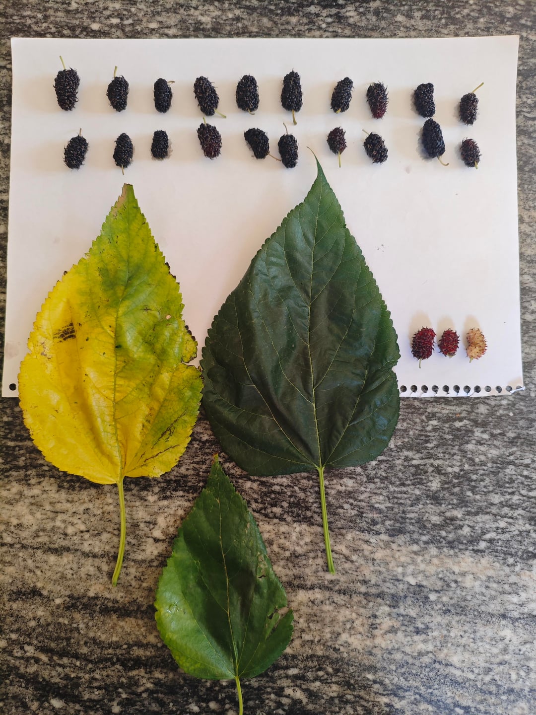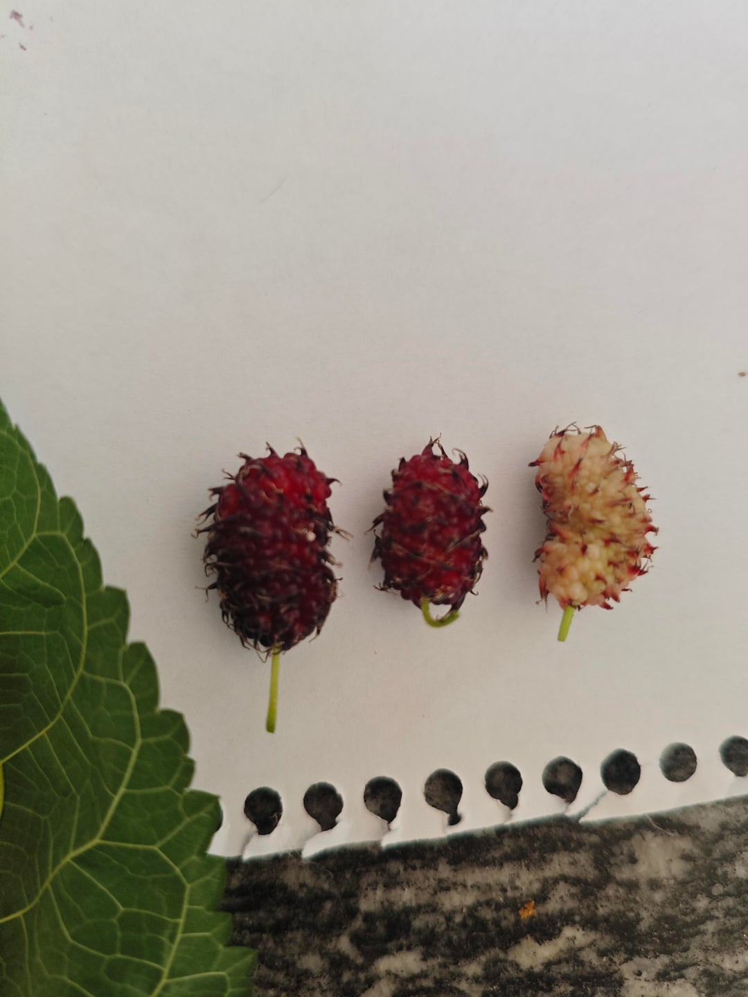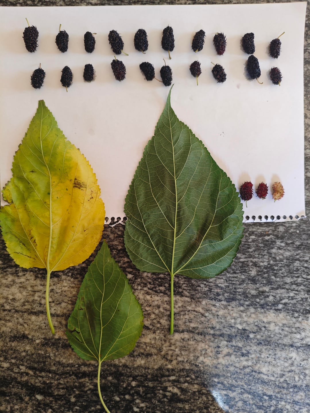 皆さん、こんにちは。私の桑の木の特定の種類を特定するのに助けが必要です。オンラインで調べてみましたが、矛盾する情報がたくさんあるため、ID を調べるためにツリーから確かなデータを収集することにしました。私が収集したデータは次のとおりです。 1. 果実 (核果): この木から 20 個の成熟した果実の長さを測定しました。平均長さ: 1.89 cm。色の段階: 果物を 3 つの異なる段階で記録しました: 白/淡い (未熟)、赤みがかった、濃い/黒 (完全に熟した)。 2. 葉: 同じ木からランダムに 3 枚の葉を取り出しました。葉の長さ:1〜17.3cm。 2-18.9cm; 3~12.0cm。 3. 枝:樹皮と断面が見えるように3本の枝を切りました(写真添付)。写真:寸法、葉、切り取った枝、さまざまな成熟段階(白→赤→濃い)の果実を含む全プロセスの写真を添付しました。これに基づくと、これはおそらく Morus nigra、Morus alba、または特定の雑種でしょうか?よろしくお願いいたします。