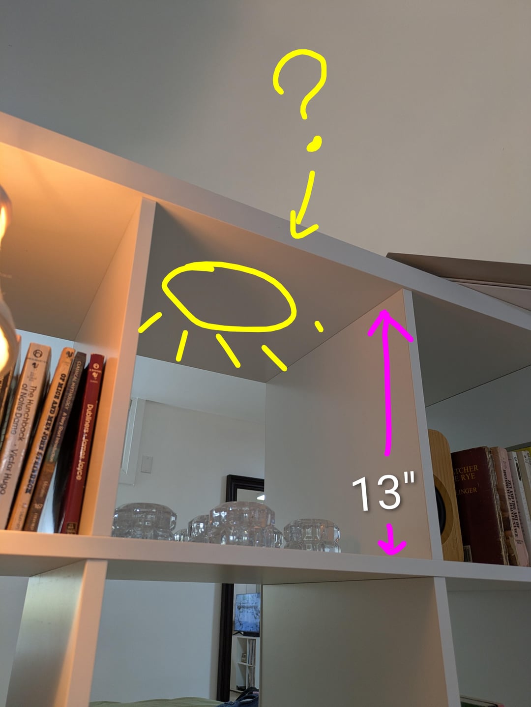 誰かがこれらの棚の下側に取り付けることができる植物育成ライトに出会ったことがありますか?ボックスの高さは13です"、小さな緑色のものにも対応する必要があります。十分に薄くても効果的なものを見つけるのに時間がかかっています。