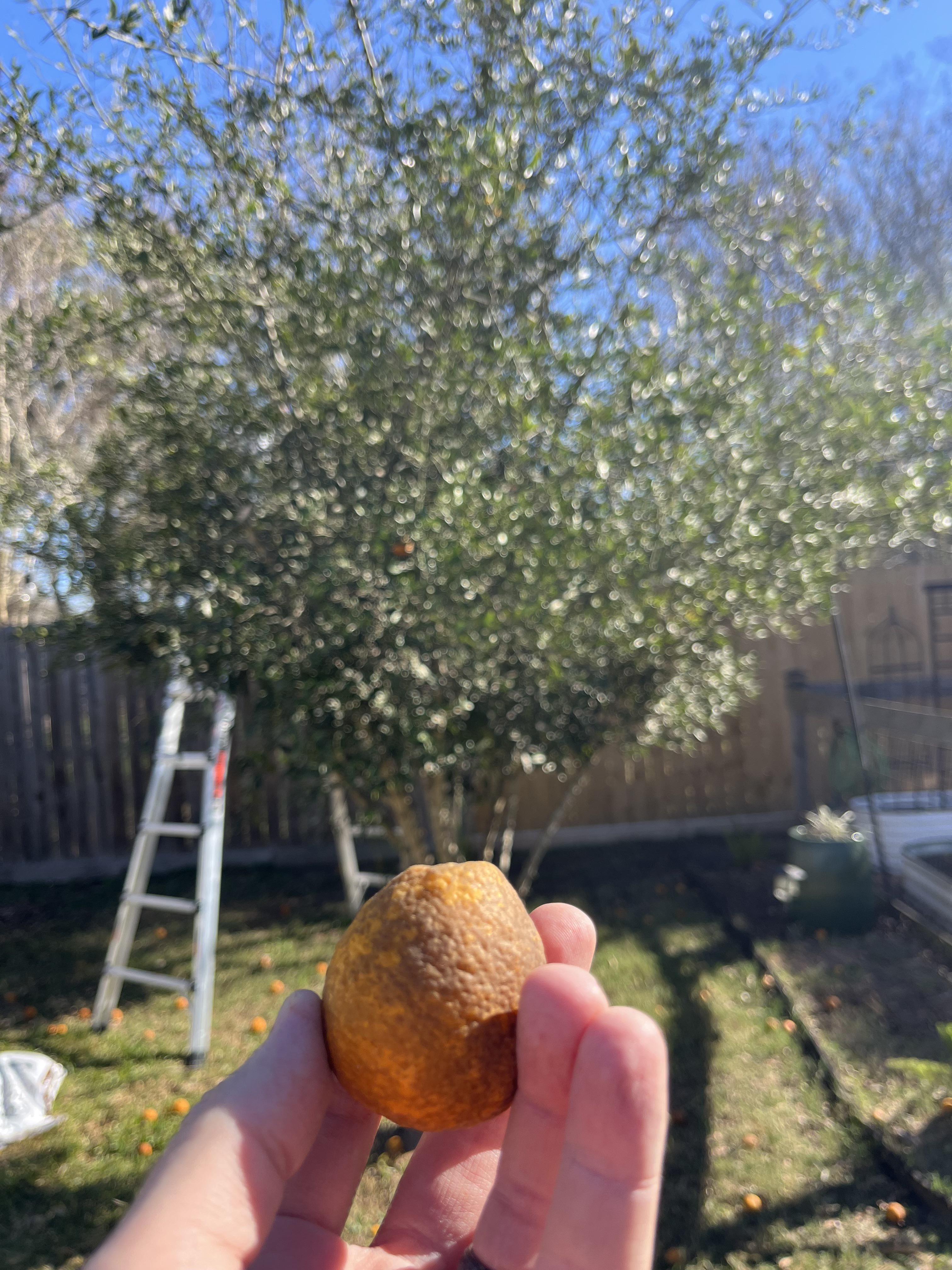 そしたら今年も同じこと。ゴルフボールやラケットボールより大きくなることはなく、枝の上で腐ってしまうだけです。私たちは、もっと大きな品種のオレンジだと思っていたので、苗床で誤ってマークされたのだと思いました。
