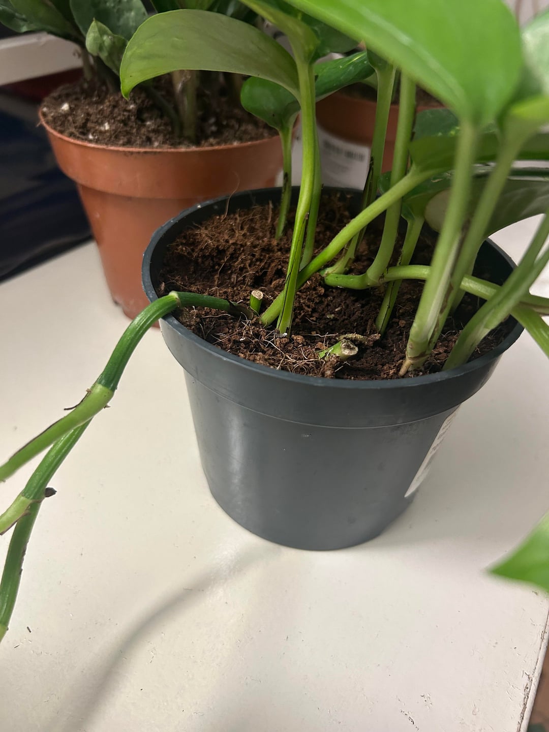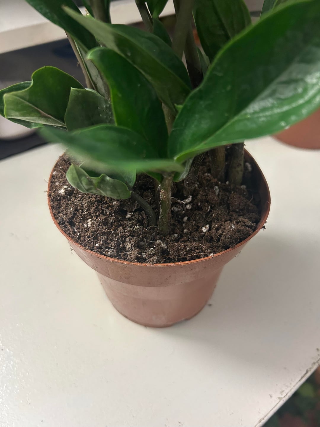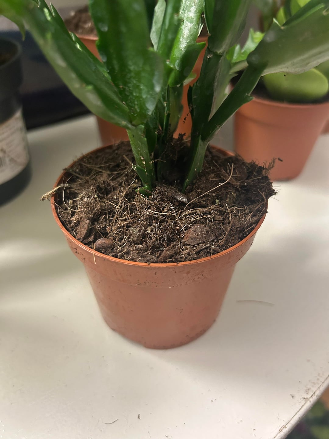土のクローズアップと、入手した植物の画像を載せました。情報源が私に他の人をリポットするように言ったり、リポートしないように言ったりしているのですが、どうすればよいでしょうか?新しい棚も建てる予定なので待ちきれません(笑)
