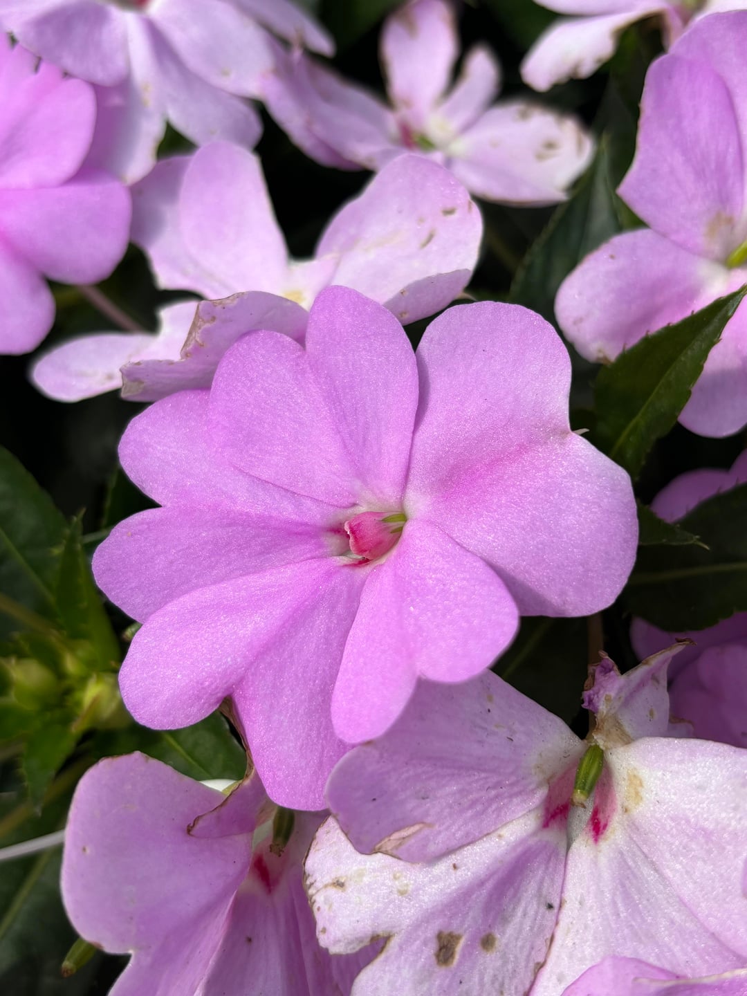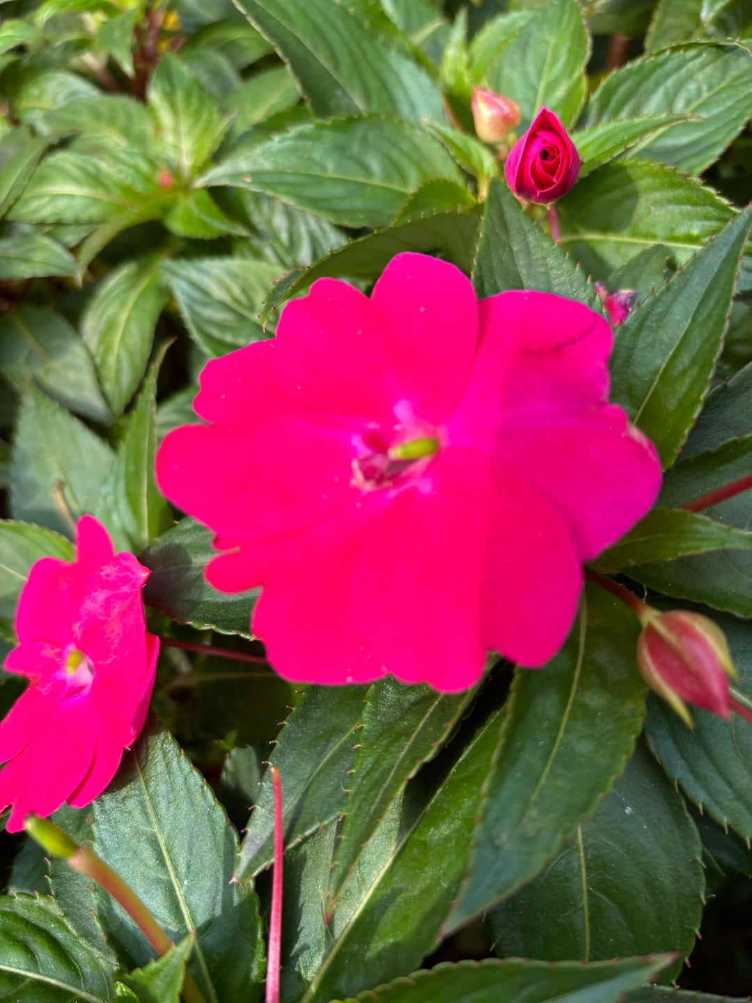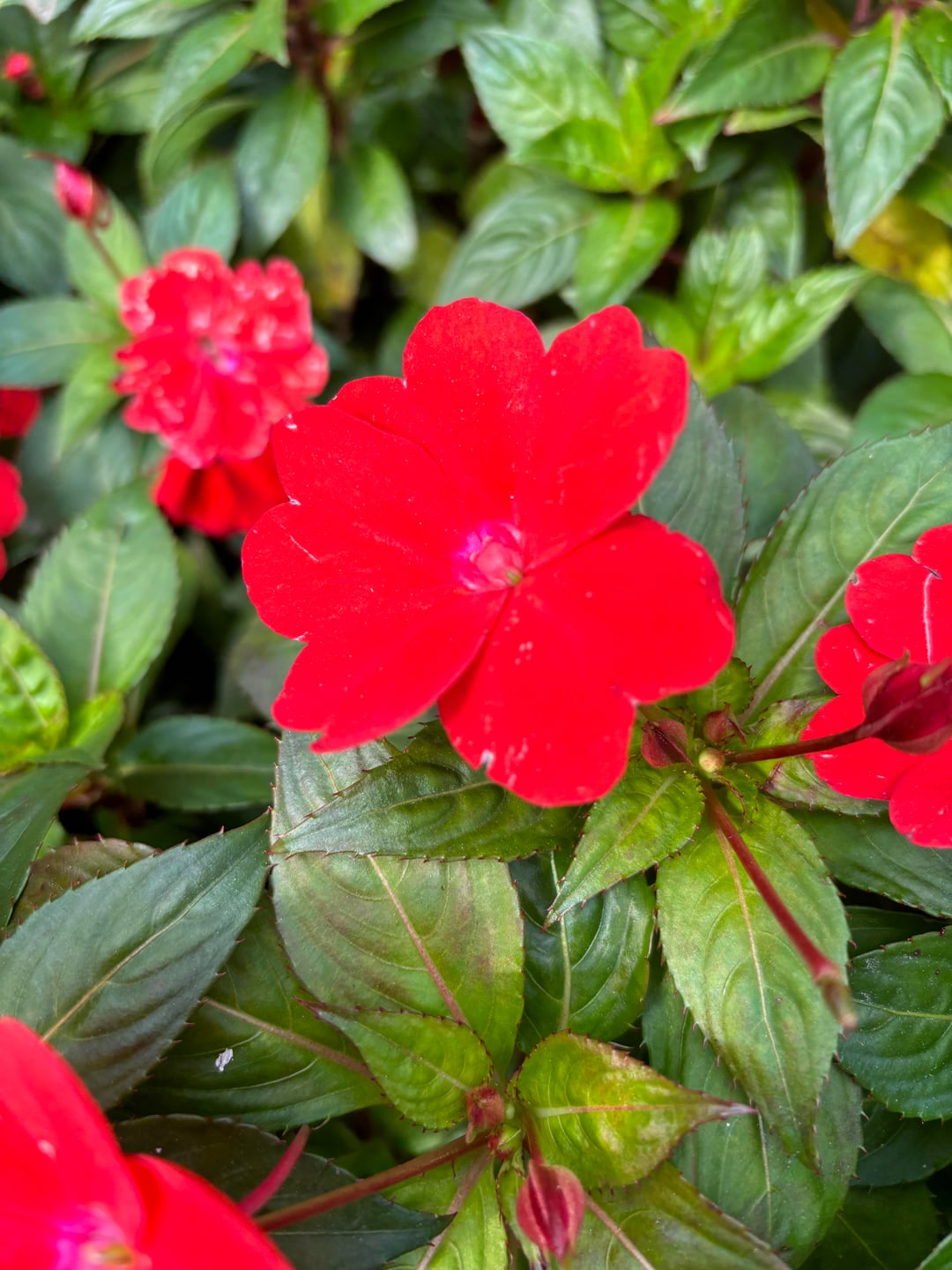 私たちは朝の散歩中にコミュニティガーデンのそばを歩いているときに、これらの美しいインパチェンスに出会いました。