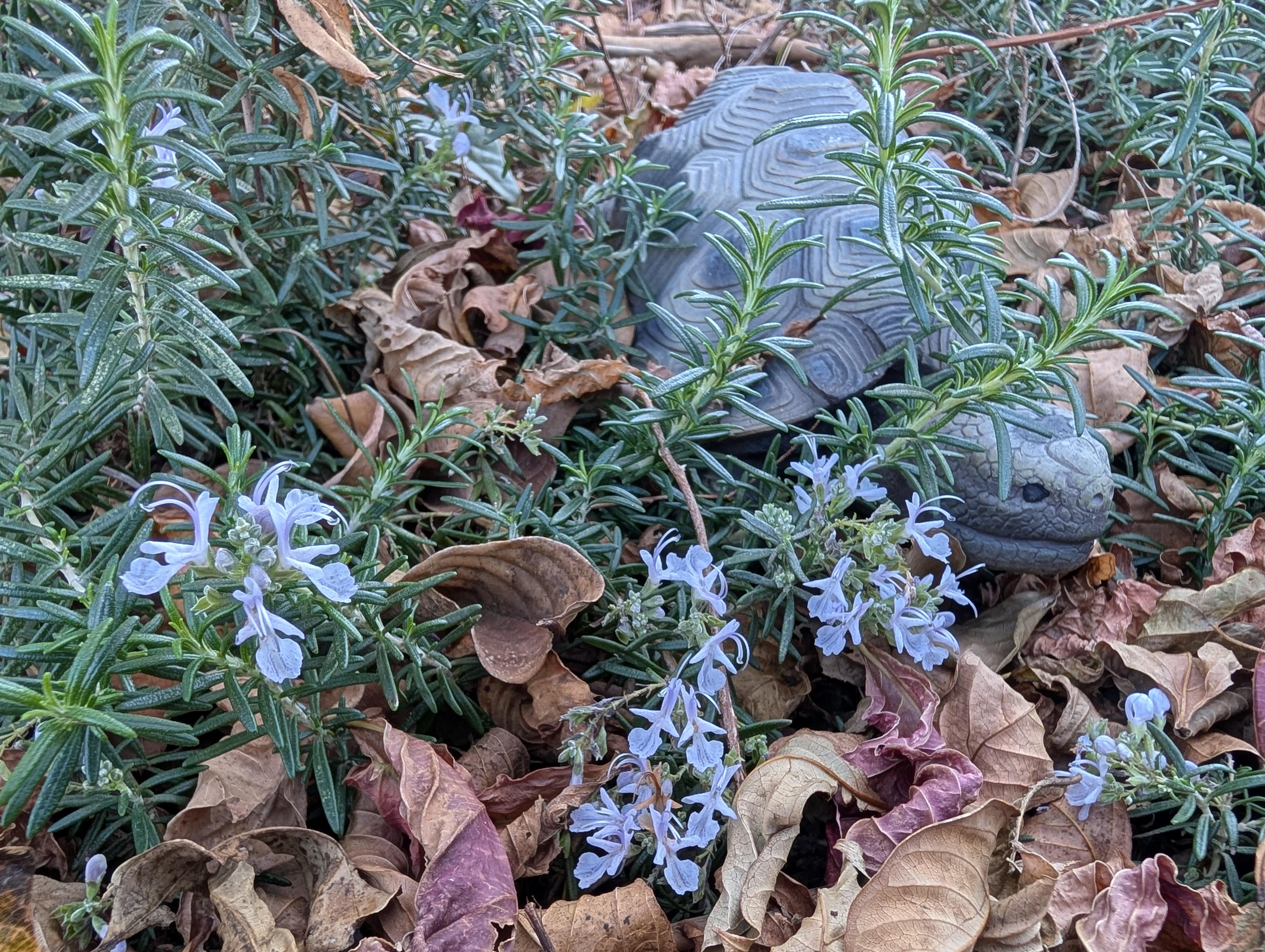 昨日、前庭の庭を覗いてみると、驚いたことに、ローズマリーが開花していました。ローズマリーを4年ほど飼っていますが、花が咲くのは初めてです。こんなに可憐で繊細な花があるとは知りませんでした。