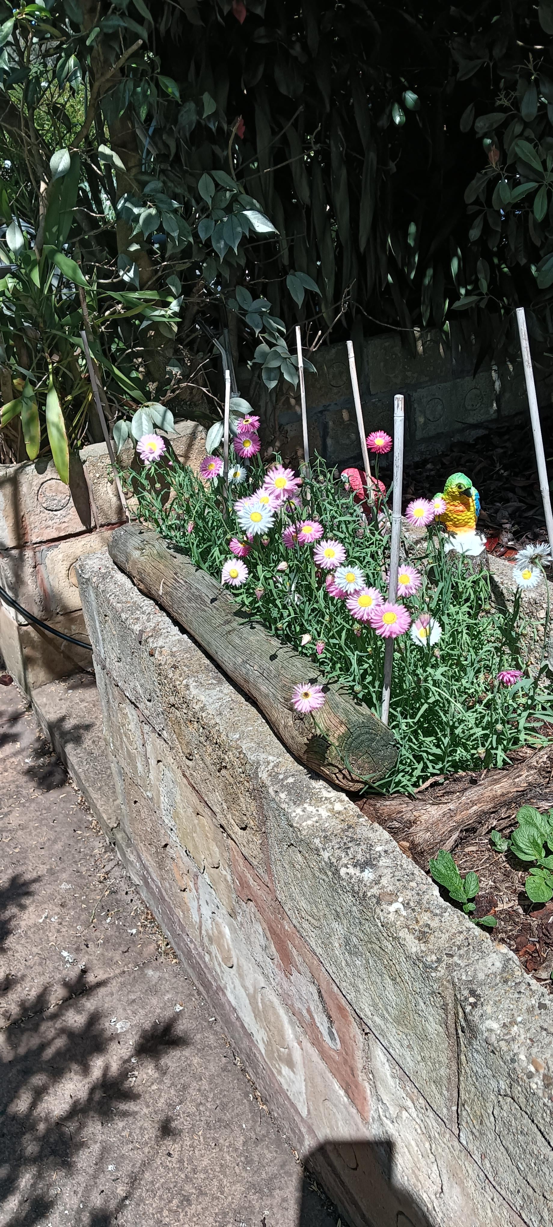シーズー犬のチョコスが16歳で亡くなった後、獣医師から贈られたピンクと白の永遠のヒナギクのセレクション。