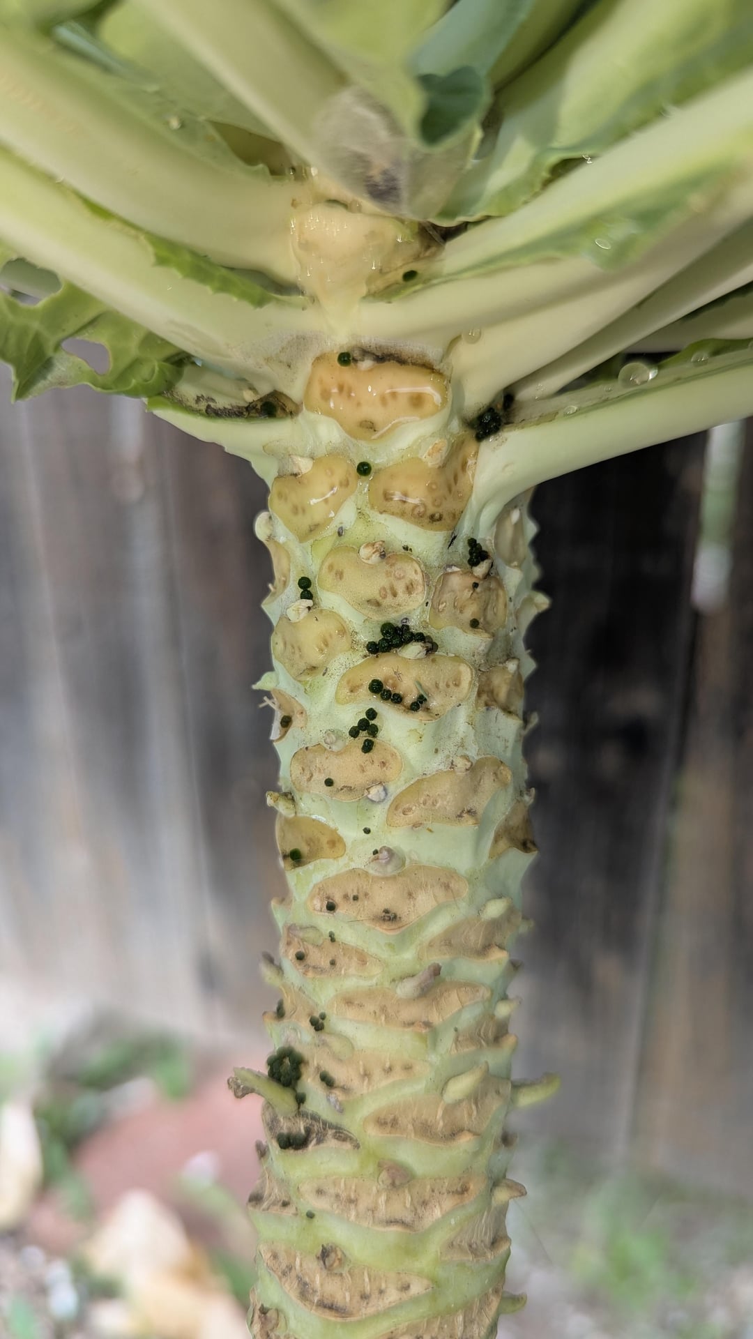 私のコラードについて。昨日、下の方の葉を数枚落としたのですが、今日気づきました。森/藻/苔のような緑色で汚れやすい