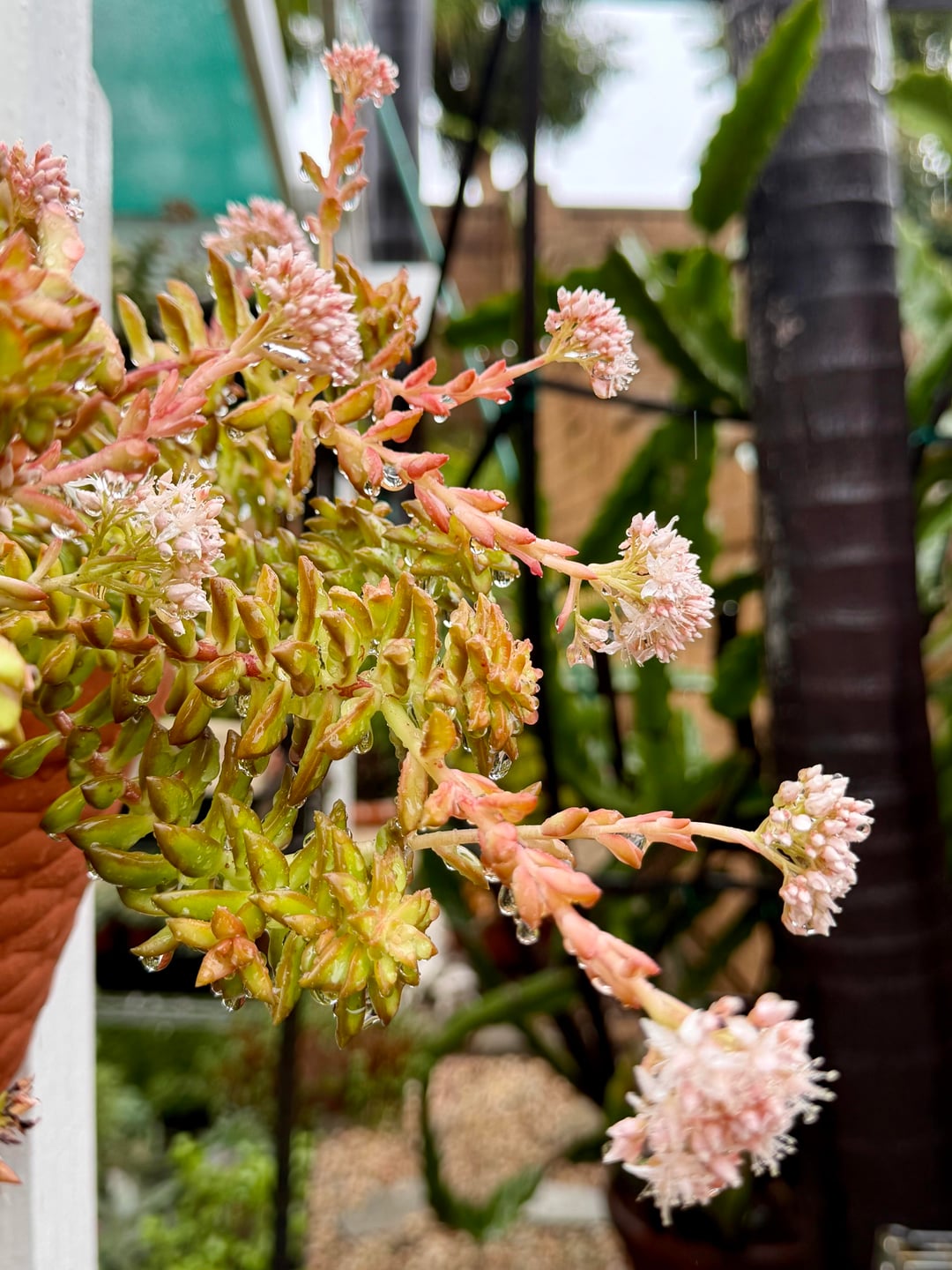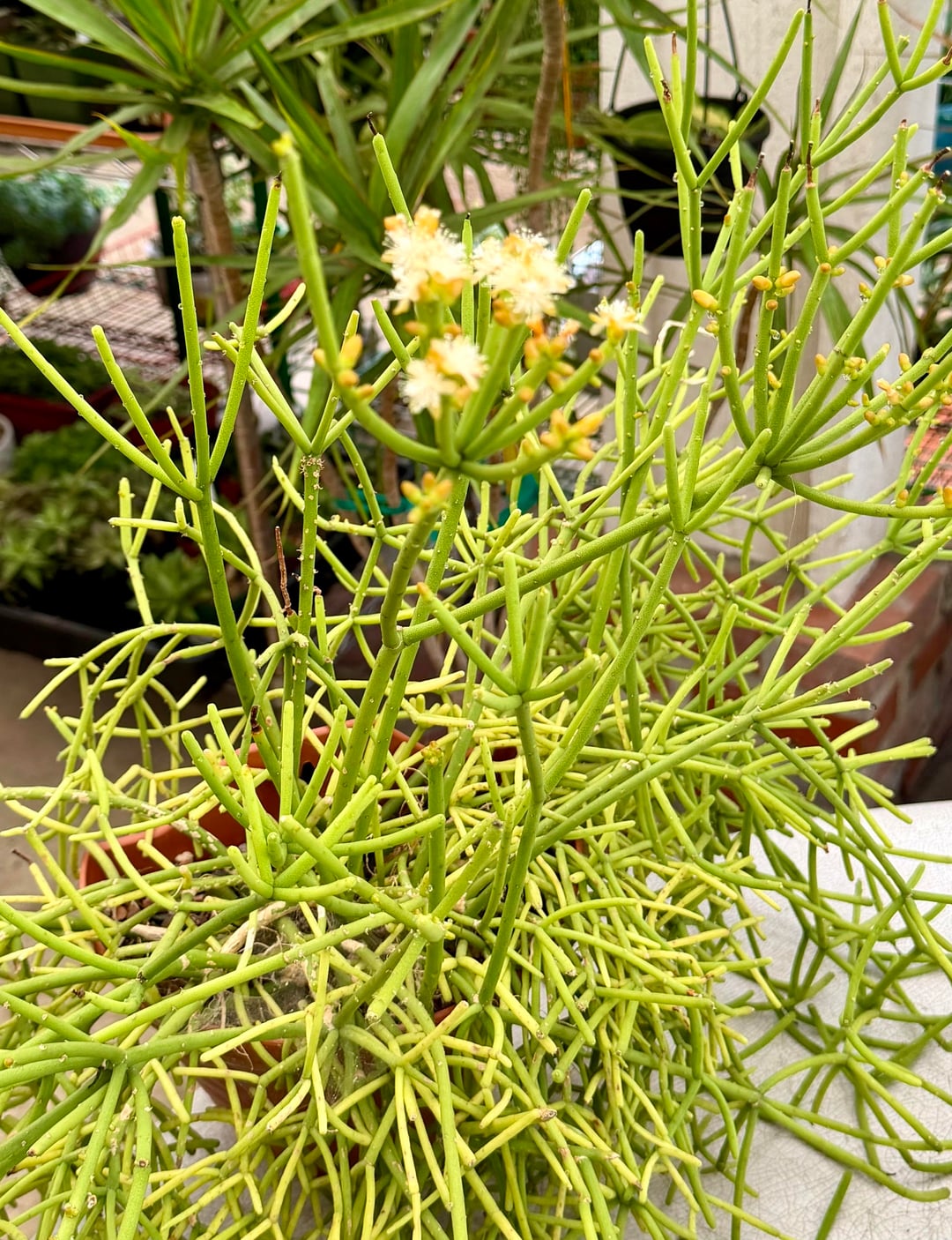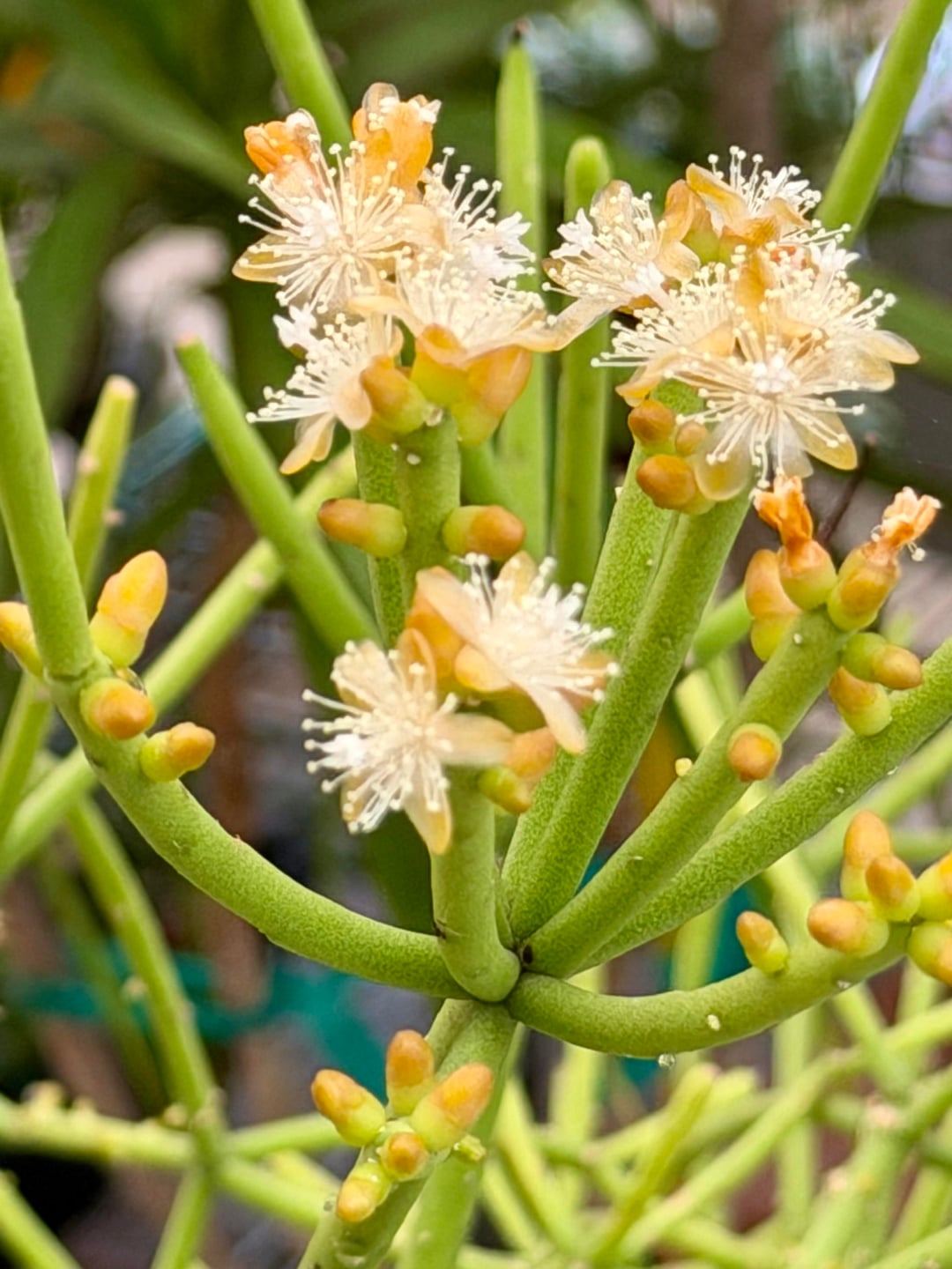 多肉植物から冬の花が咲きます。