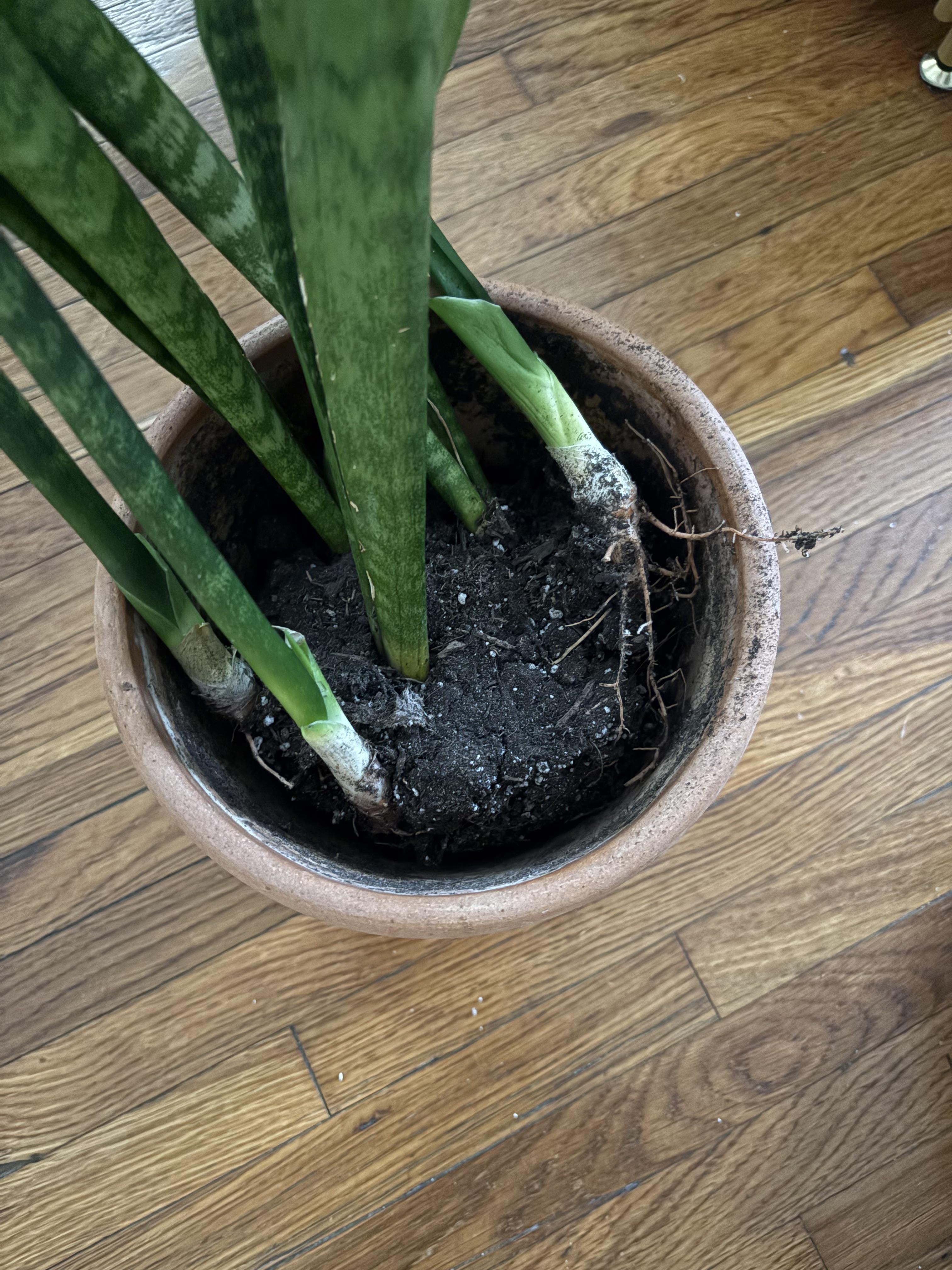 ルームメイトがそれをひっくり返しました。約4フィート落ちました。大量の土があちこちに落ち、それをすくってゴミ箱に捨てました。奇跡的に鍋は割れませんでしたが、今ではヘビはすべて45度から90度の角度になっています。 全部植え替えようかな?トーストですか?これは私にとって最も古い植物なので、とても悲しいです。