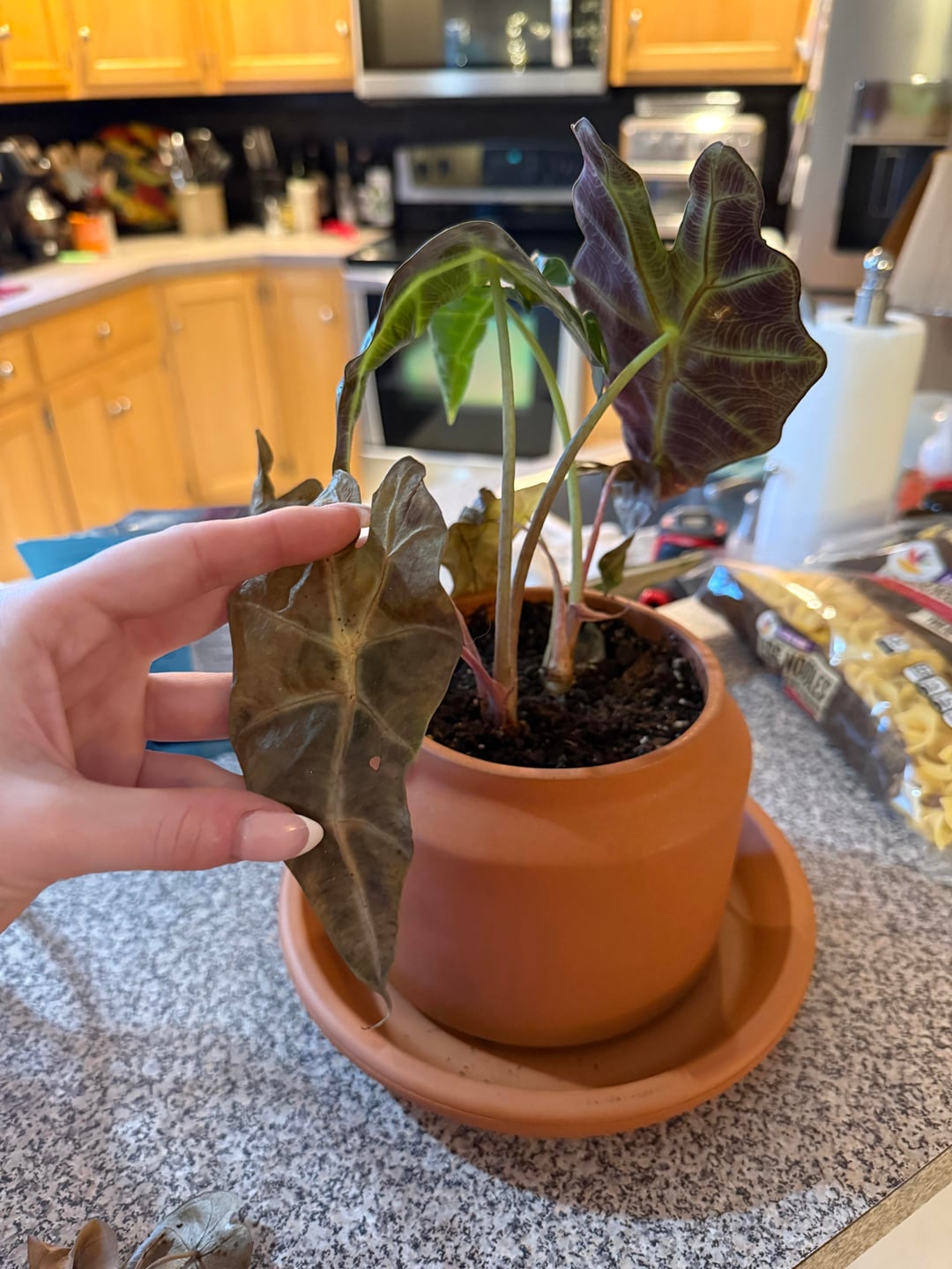 クワズイモが根詰まりしてきたので、ついに苗床ポットから植え替えました。数週間経ちましたが、これが起こっています 🙃 これらの土を50/50の比率で混ぜました。誰かアドバイスがあれば共有してください!