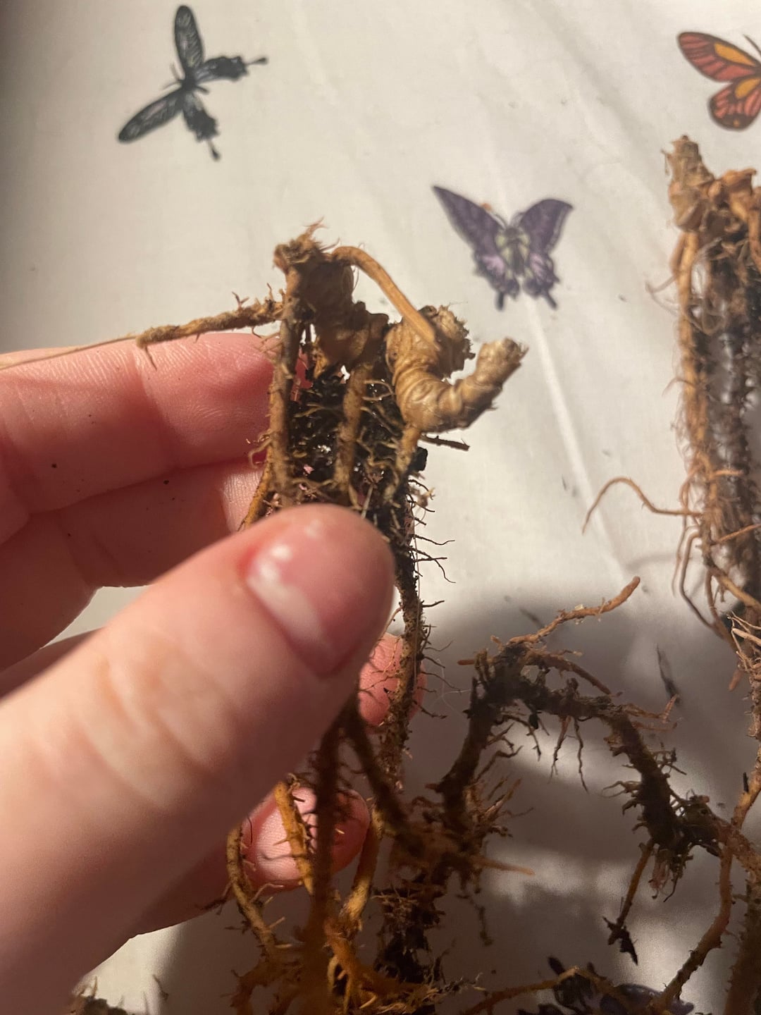 IDはわかりませんが、これらの2つの植物は非常に大きな根を持っていますが、葉はすべて枯れました。保存することは可能でしょうか?