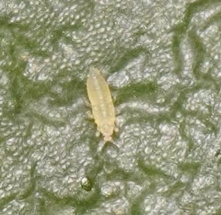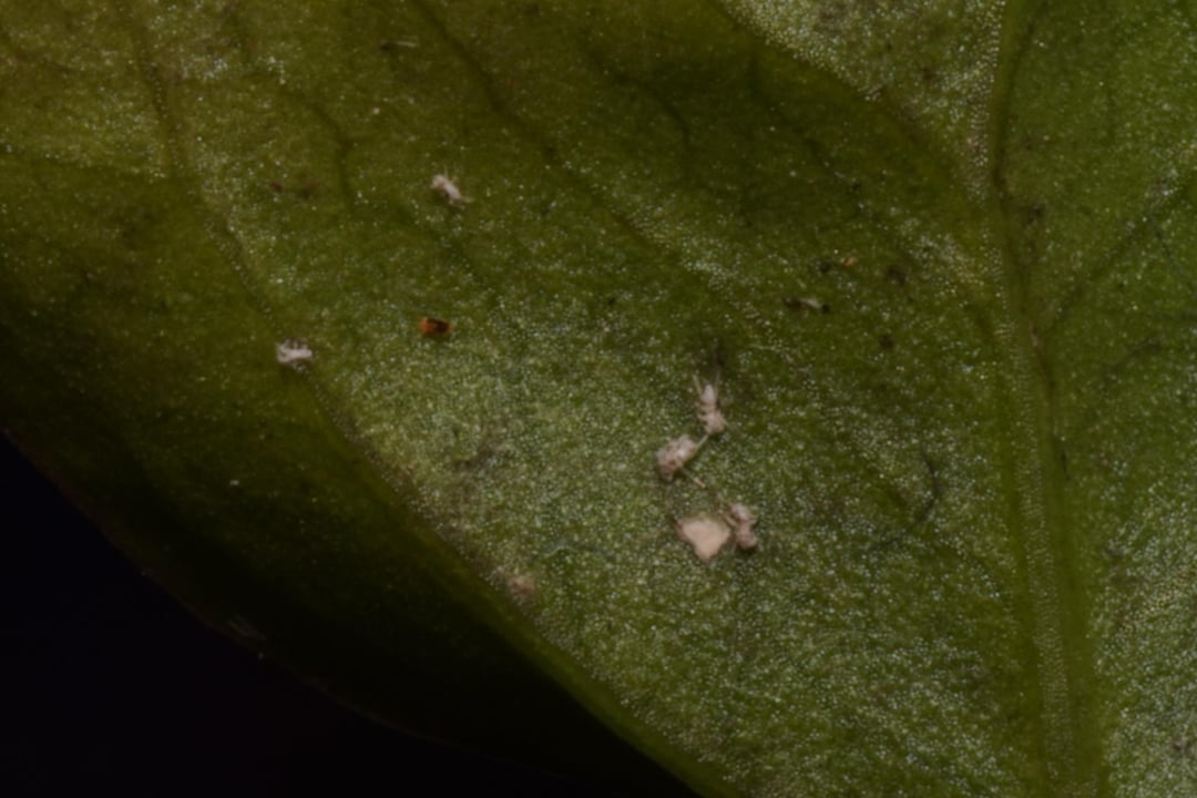 最初の画像がアザミウマであることは間違いありませんが、確認を望んでいます。 2枚目の写真は2匹いますが、左の個体はほぼ透明です。 3枚目の写真は、検索でアブラムシの巣ではないかと示唆された小さな白い物体でしょうか?最後の2枚の写真は、小さな白と赤の仕様です。ハダニ?硬くて葉を拭いても取れず、変な感じだったので、葉全体を取り除きました。