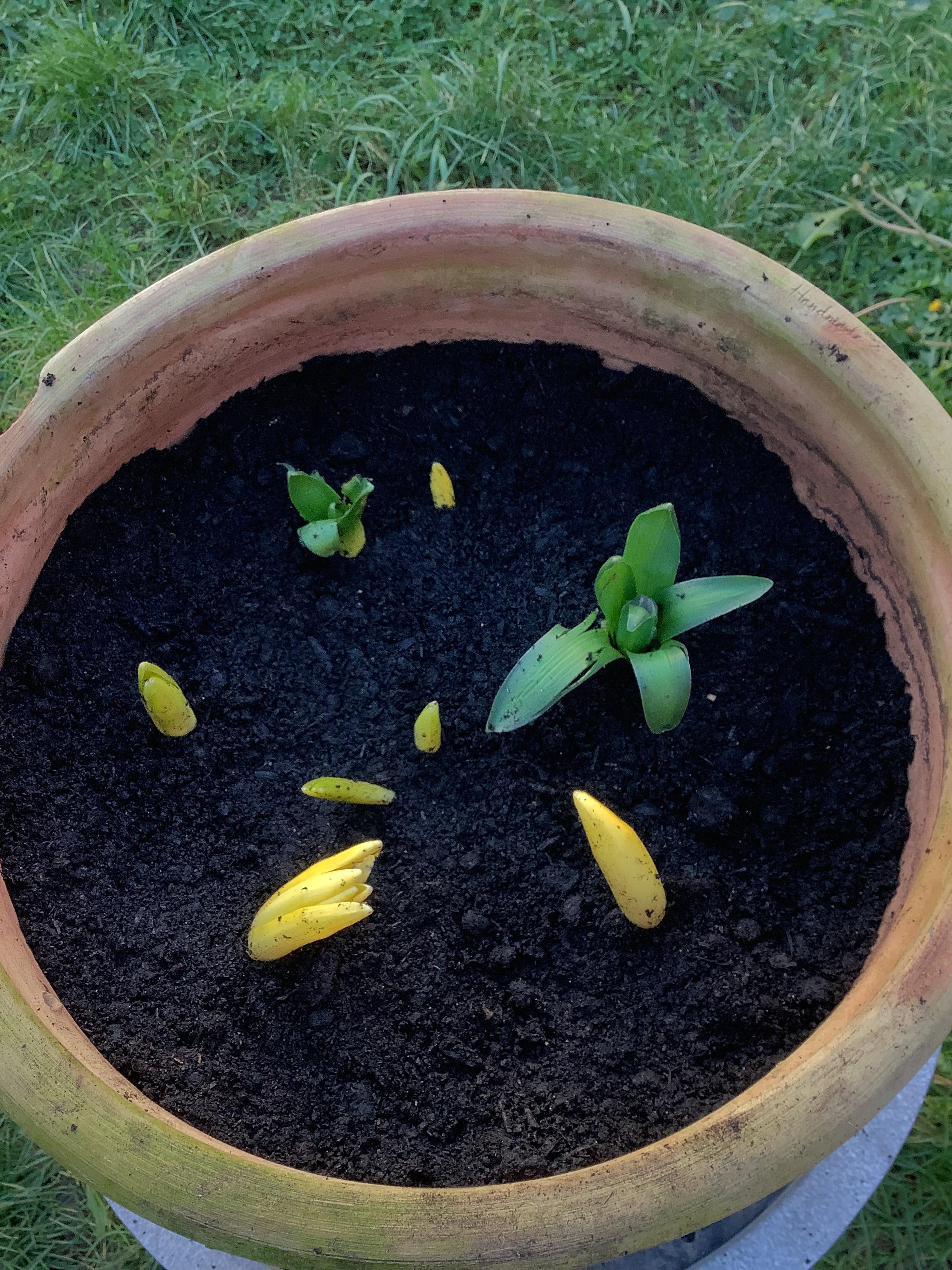 私は自分のことを庭師だとは思っていませんが、私にとってとても大切なヒヤシンスを保管しています。まだ発芽しないと思って放っておいたのですが、緑の2個に気づき、猫がおしっこをしていたところを見つけてしまいました!!ヒヤシンスは猫にとって有毒であることがわかったので、すぐに移動し、鉢や石、根や球根を完全に掃除し、最後に新しい土に植え直しました。黄色いものはすべて上下逆さまや横向きなどに芽を出していたのですが、何か他にできることはありますか?彼らは大丈夫でしょうか?