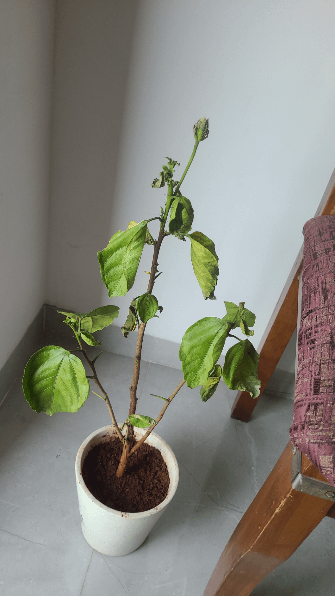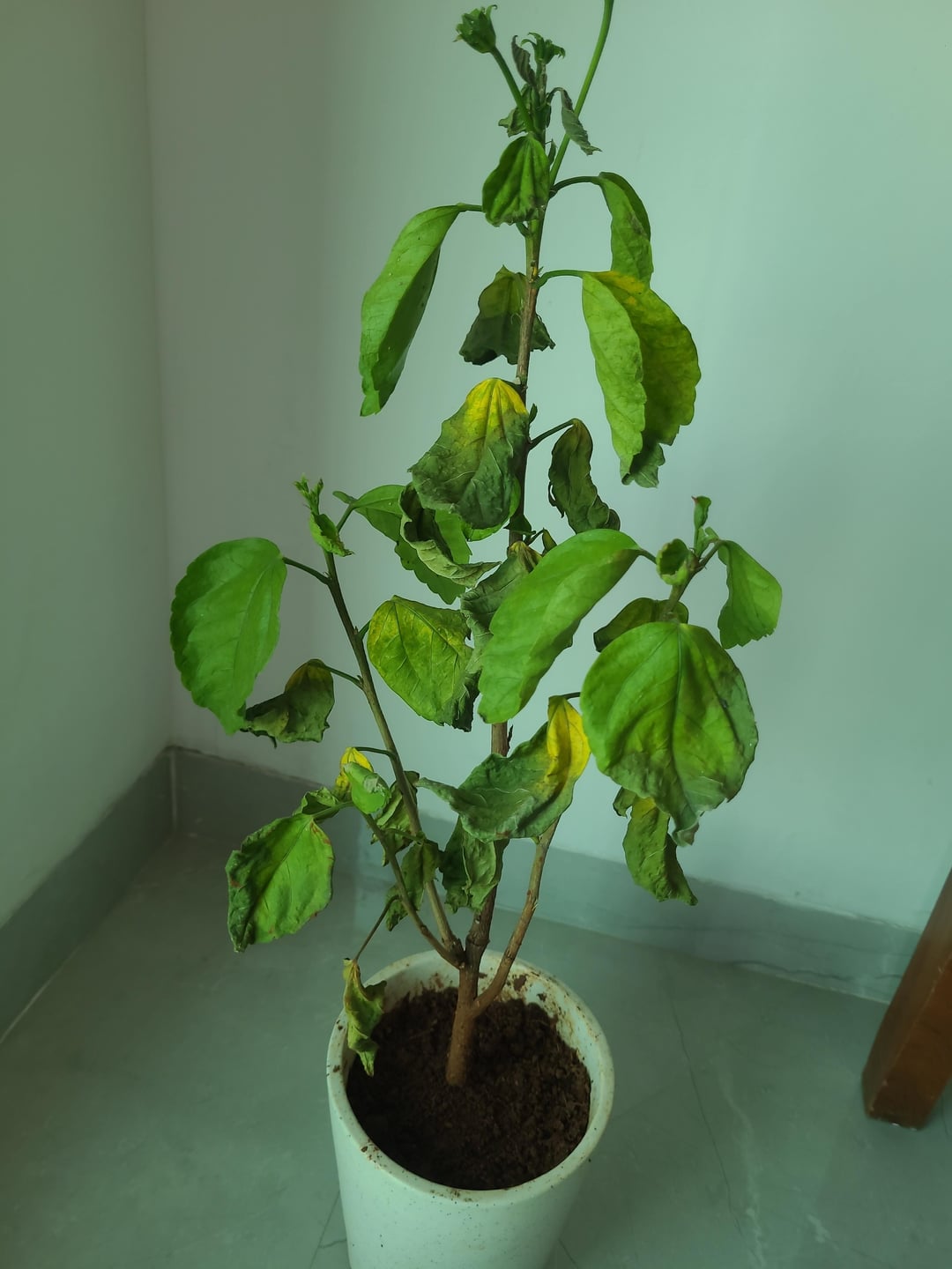 このハイビスカスの家を旅行中に苗床から購入しましたが、ニーム油と水を使用した害虫が完全に蔓延していました。害虫はいなくなったようです。苗床ではひどい混合物が使用されていました。土は本当に圧縮されていて岩のように硬く、肥料も多すぎました。ムンバイの家の南向きのバルコニーで保管されていました(ここは太陽が地獄です)午後の日差しは1 30から6 30まで当たります