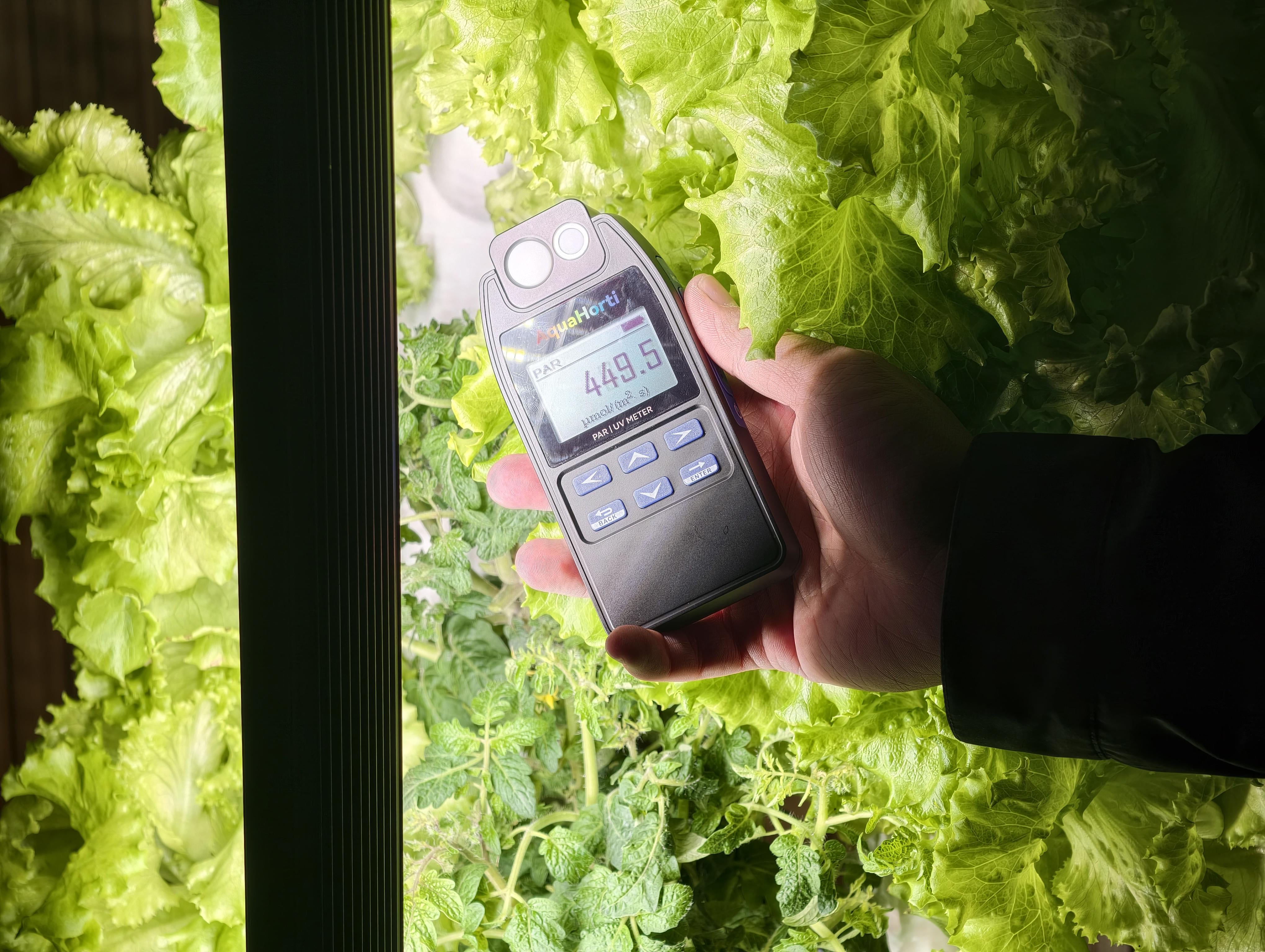 私のレタスの樹冠レベルで PAR を測定したところ、約 450 µmol/m²/s でした。私は特定の数値を追いかけているわけではありません。主に PAR を使用して、光がどの程度均等に分散されているか、そして植物が過度に駆動されることなく十分な光を得ているかどうかを理解しています。今のところ、レタスは満足しているように見えますが、気になるのは、皆さんは通常、屋内の葉物野菜をどのくらいの PAR 範囲で育てているのですか?