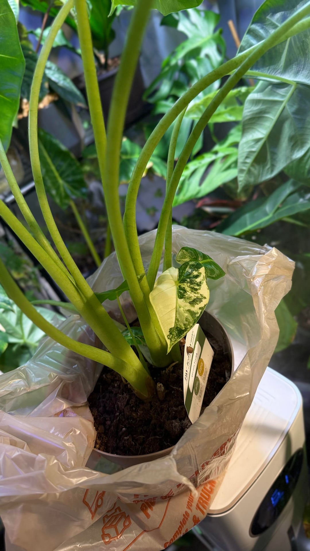 私は超オタクです!私は園芸コーナーを閲覧するためだけにホームセンターに行きましたが、すぐにこの美しい標本に目が釘付けになりました。子犬を立てかけたほうがいいでしょうか(2枚目の写真)、それとも大きくなるまで待つべきでしょうか?