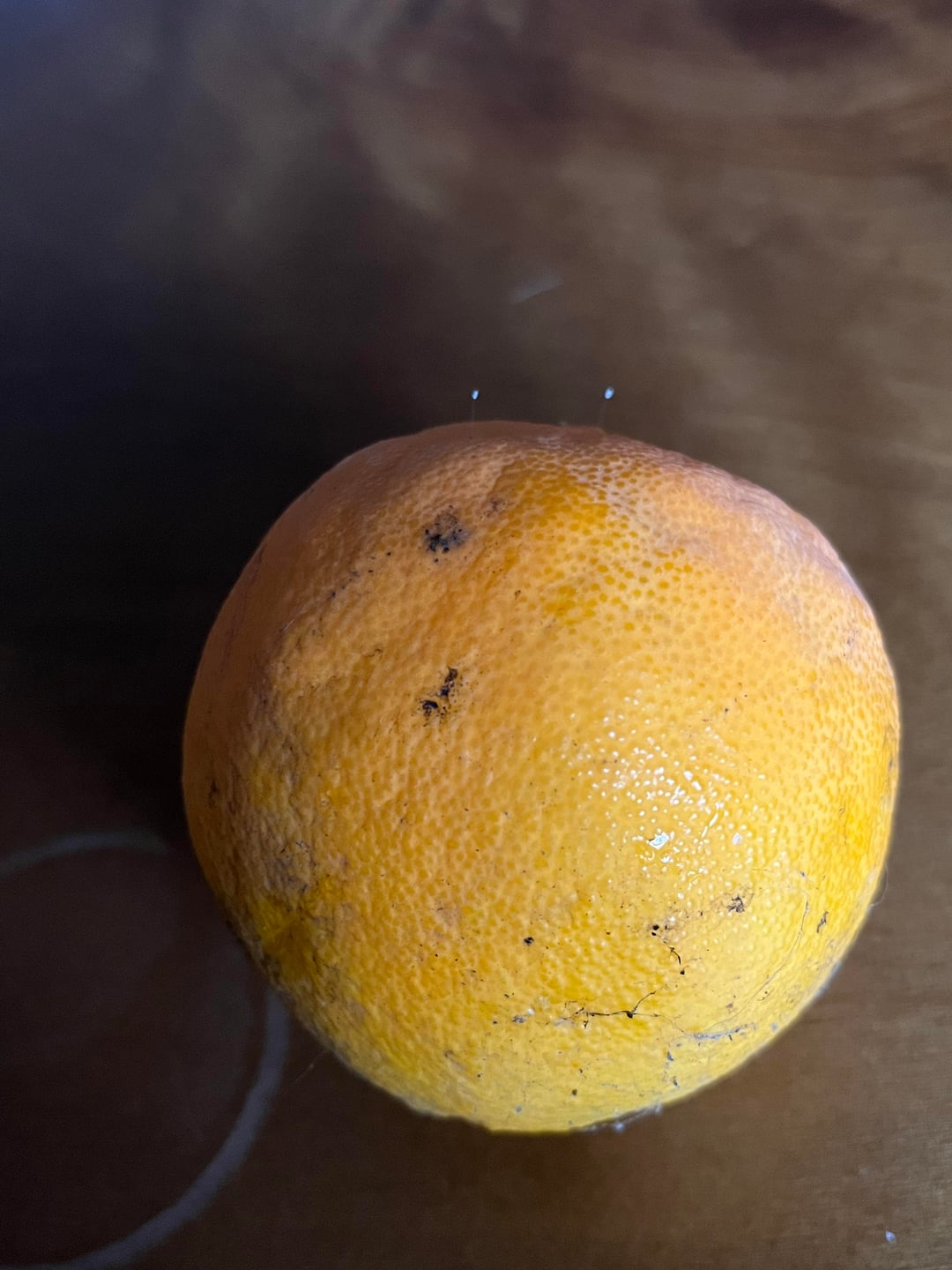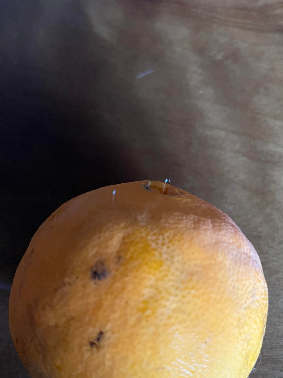 カリフォルニア北部にオレンジの木があります。今年も今のところ、素晴らしい実がたくさん実っています。今日これを選んだところ、先端が白い小さな毛に気づきました(写真のオレンジ色の上部のあたり)。木にある他の数個のオレンジだけがそれらを持っています。彼らが何であるか知っている人はいますか?