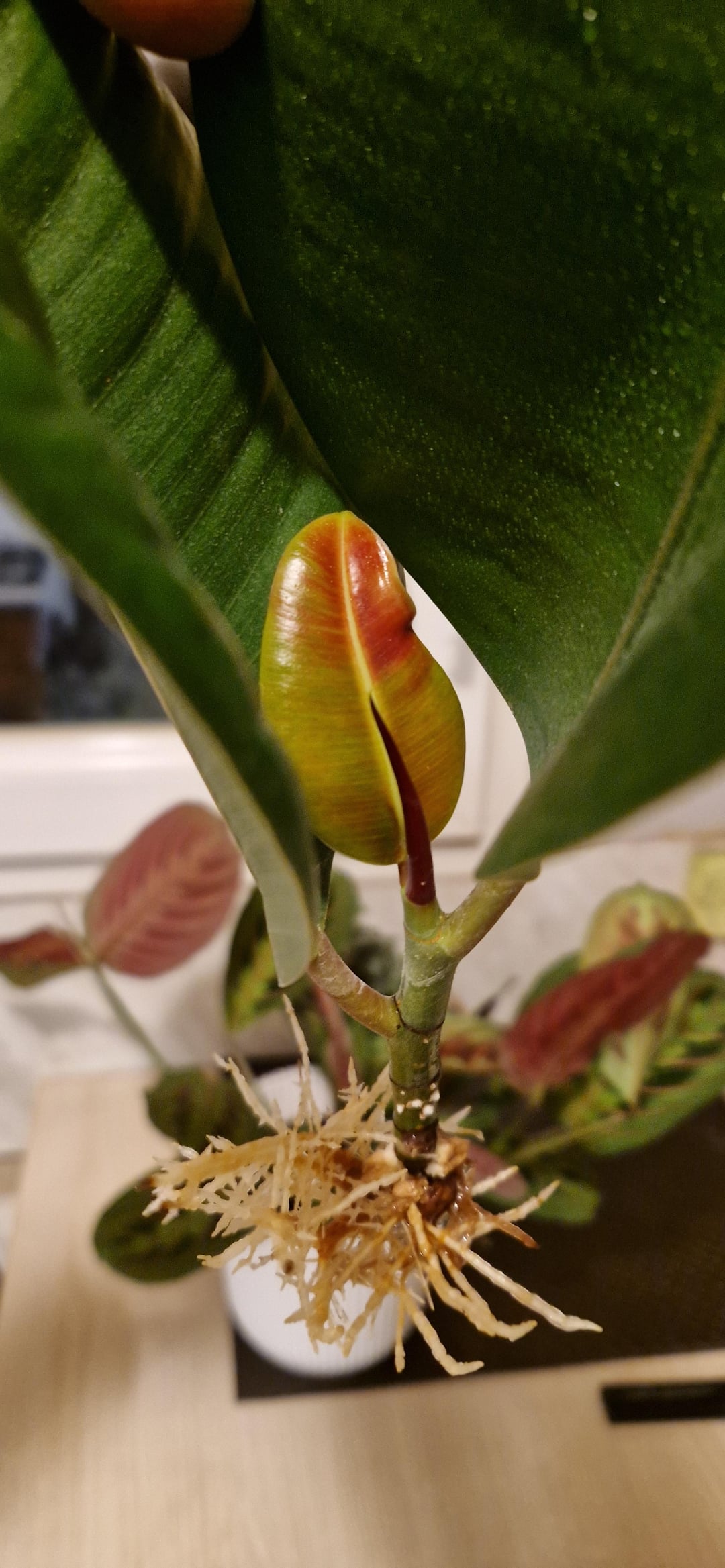 このフィカス(エラスティカ?)を水に4か月間入れていましたが、鉢植えの準備はできていますか?