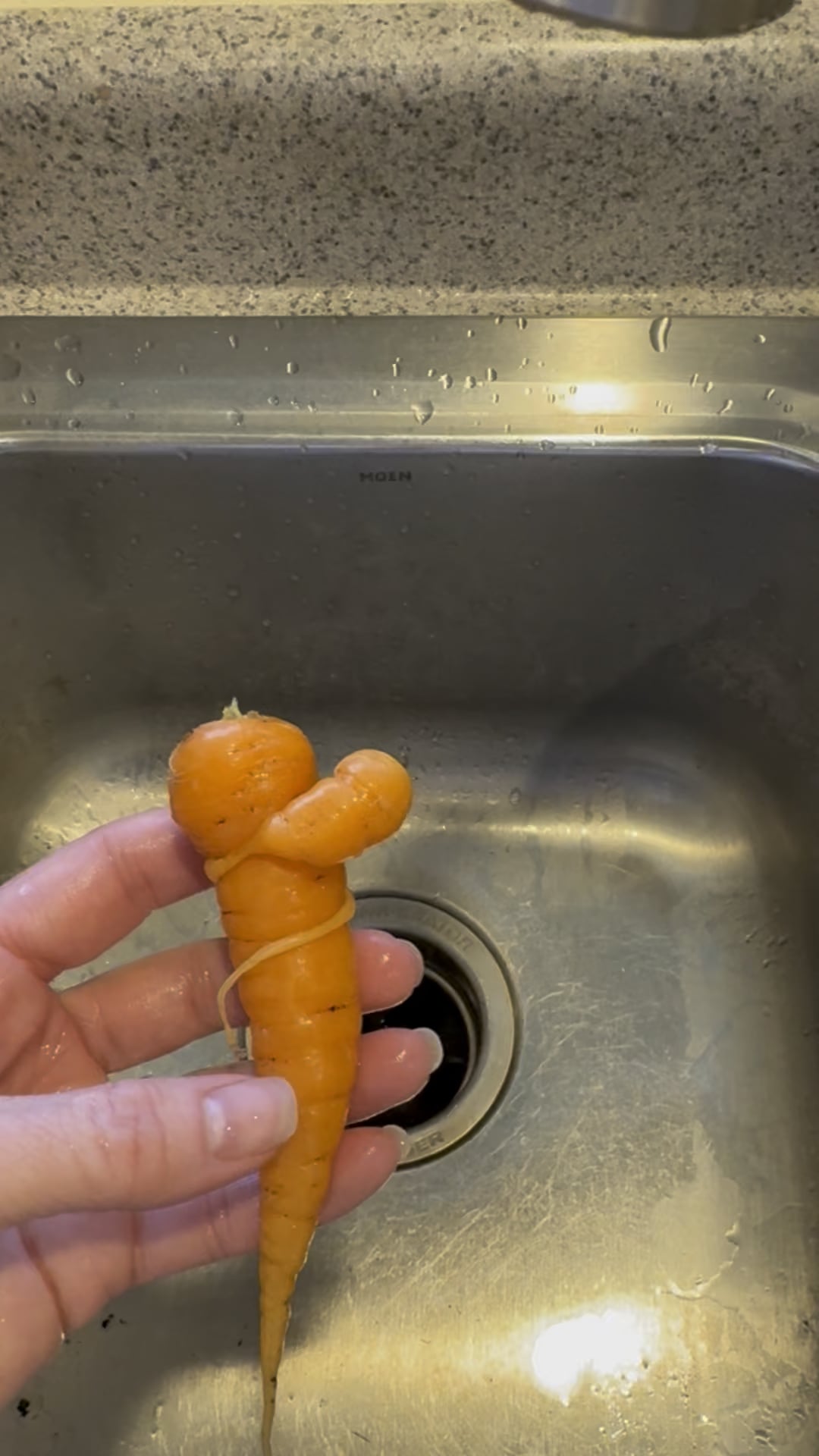 今日はローストするためにウィンターガーデンからニンジンを収穫しました。どうやら、十分に薄めていなかったようです。この小さな赤ちゃんニンジンは、近所の人に巻きつき始めました。ニンジンを育てるのはとても楽しいです。引き上げるまでは何が得られるかわかりません。
