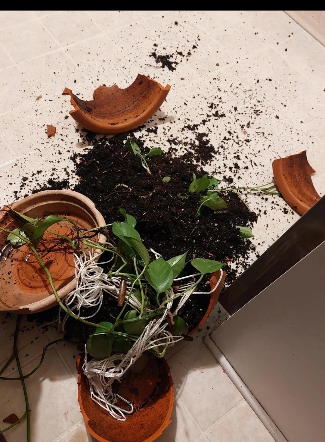 ポトスを運んでいたプラスチックの受け皿が壊れてしまいました。 8ヶ月後…
