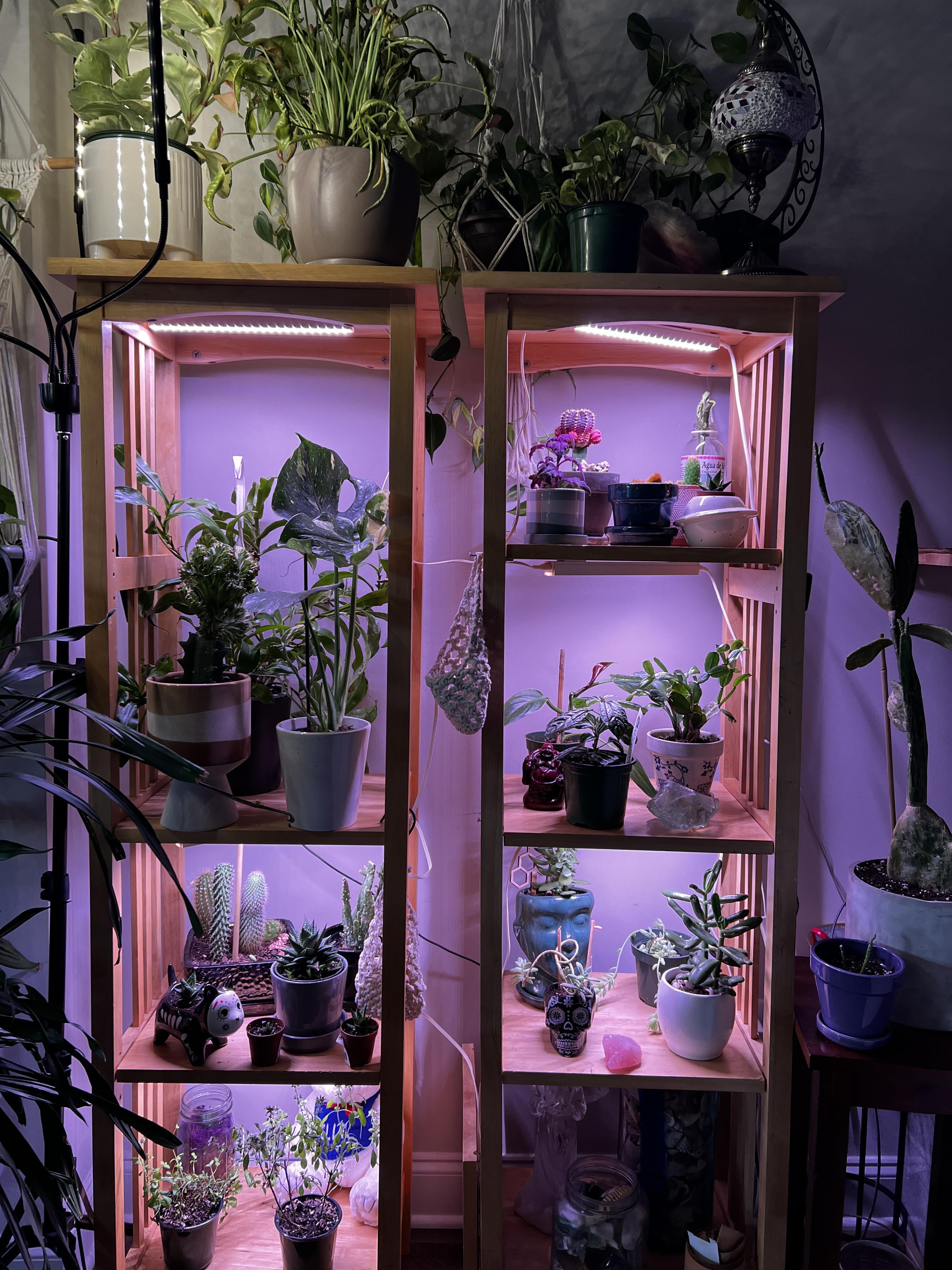 間接光が少ないリビングルームの 2 つの棚用に Barrina T5 栽培ライトを購入しました。成長した/開花した植物の推奨距離は 7 ~ 9 インチです。ただし、ここに示されているもののほとんどは 4 ~ 5 インチ離れています。私の質問は、葉が焼けないようにするにはどれくらいの時間これらを付けておけばよいか知っている人はいますか?あるものは他のものよりも光の要求が高いことを私は知っています。しかし、Barrina のページには時間に関する提案はありませんでした。
