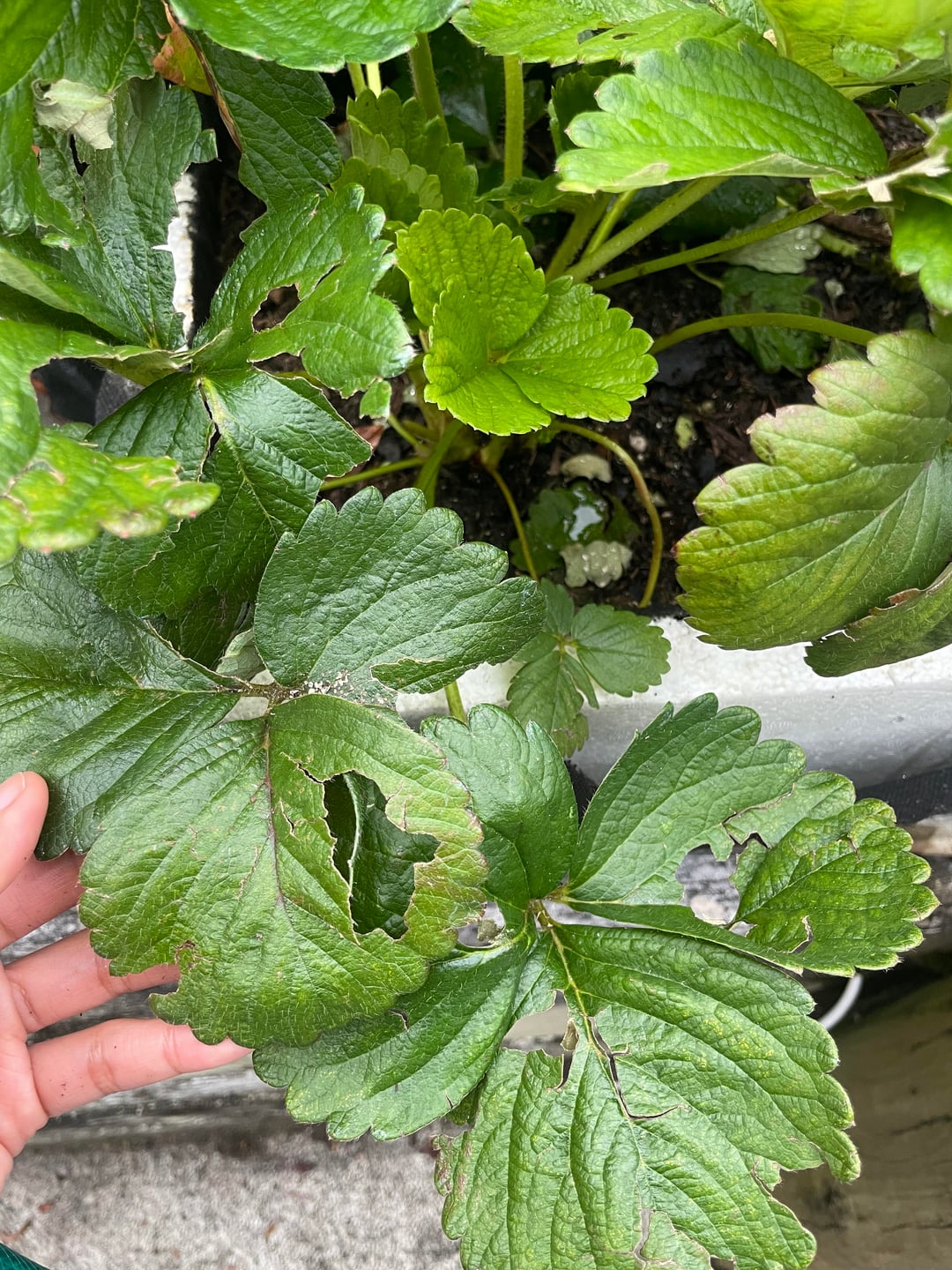 それは徐々に私の菜園を破壊し、キュウリの葉、ナス、さらにはイチゴにまで影響を及ぼしています。どのような昆虫がこの問題を引き起こしている可能性がありますか? 対処するには何を使えばよいでしょうか? 場所: オークランド、ニュージーランド よろしくお願いします!