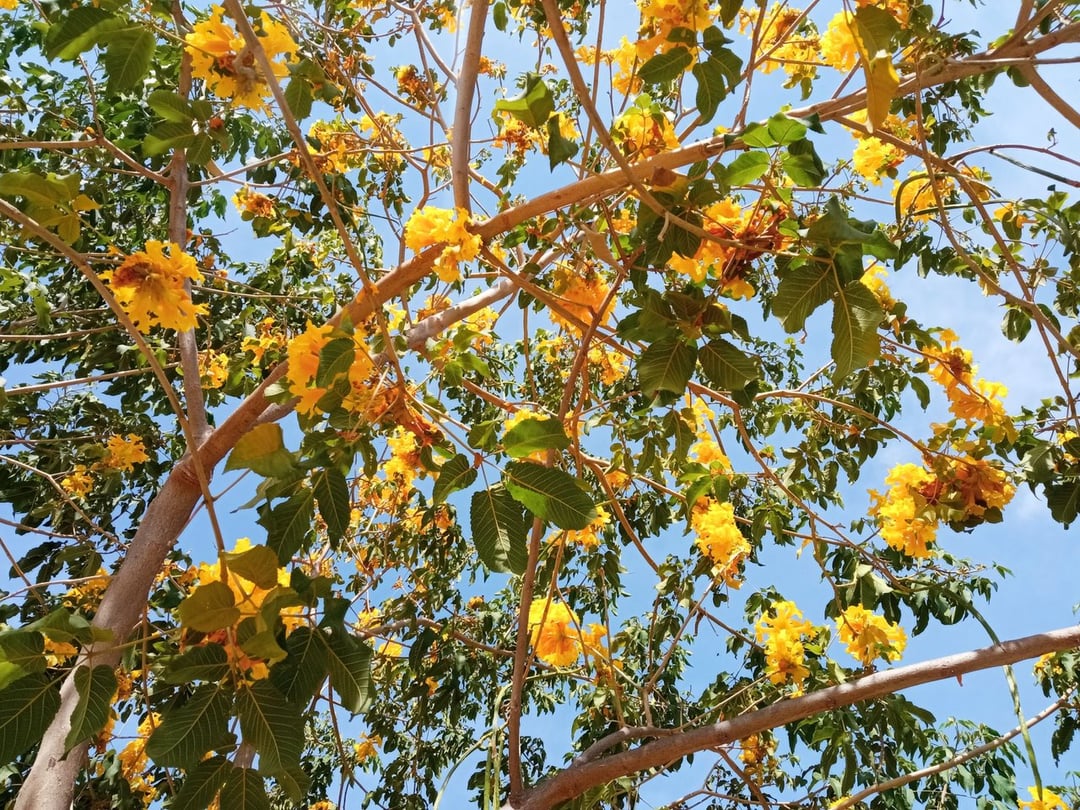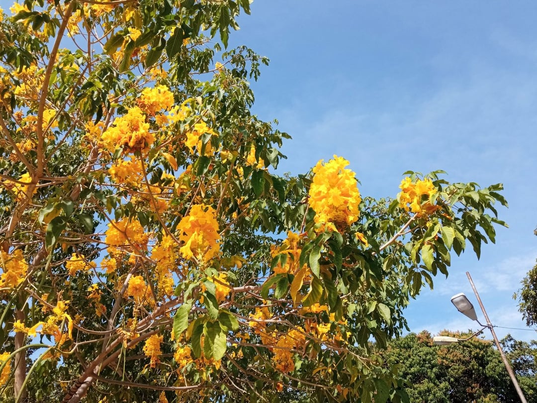 通り過ぎた小さな広場で、咲き誇る国木アラグアネイ (Handroanthus chrysanthus) に出会ったのは、私にとって自分の信念を再確認するサインでした。 投稿者: @sofathana https://peakd.com/hive-194913/@sofathana/my-first-araguaney-in-bloom-this-year-mi-primer-araguaney-en-flor-del-ano