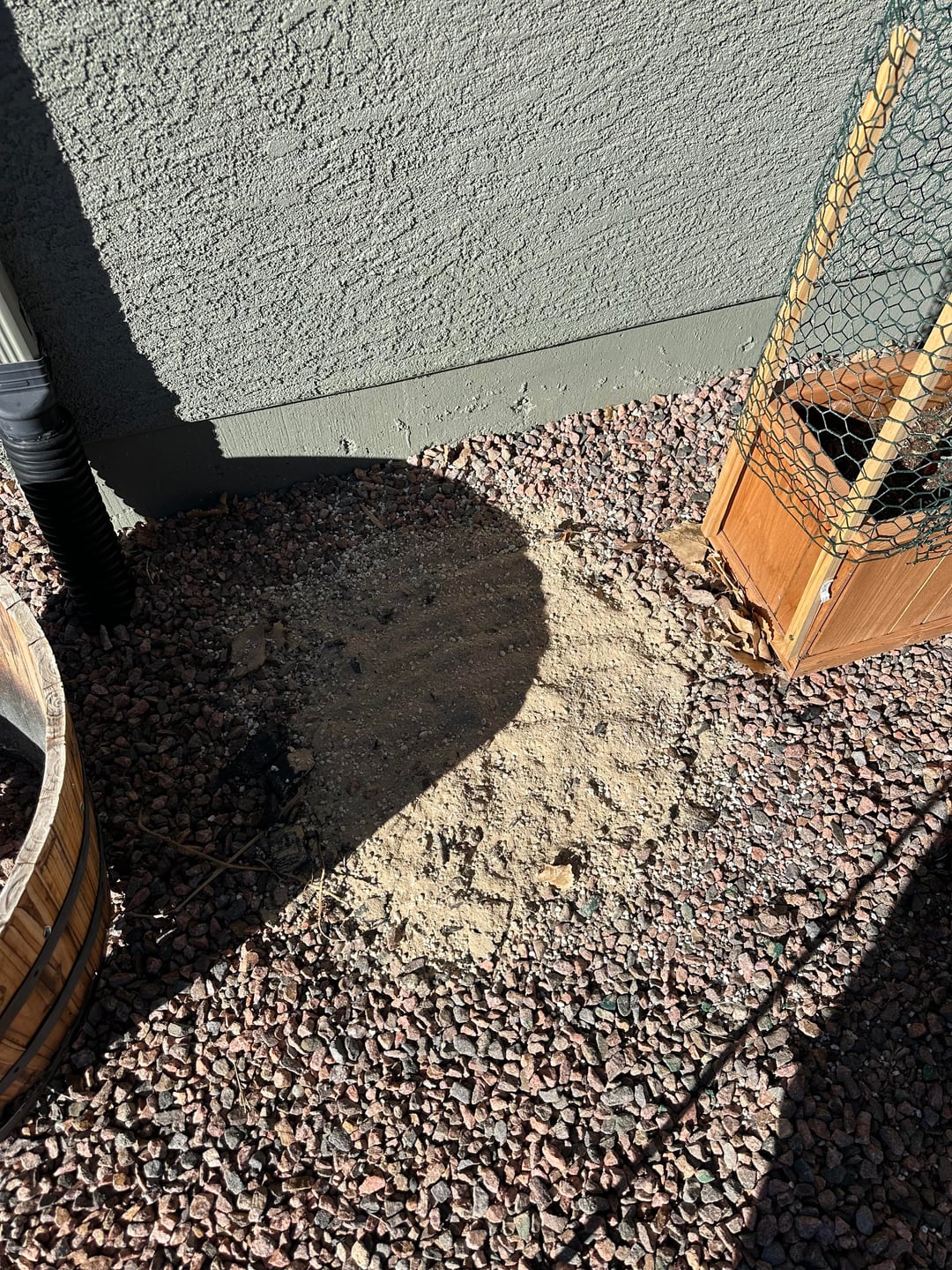おそらく数か月前に、プランターを家の裏に移動しました。今朝、夫が小屋に向かっていたのですが、家のすぐ隣でこれを見てびっくりしました。