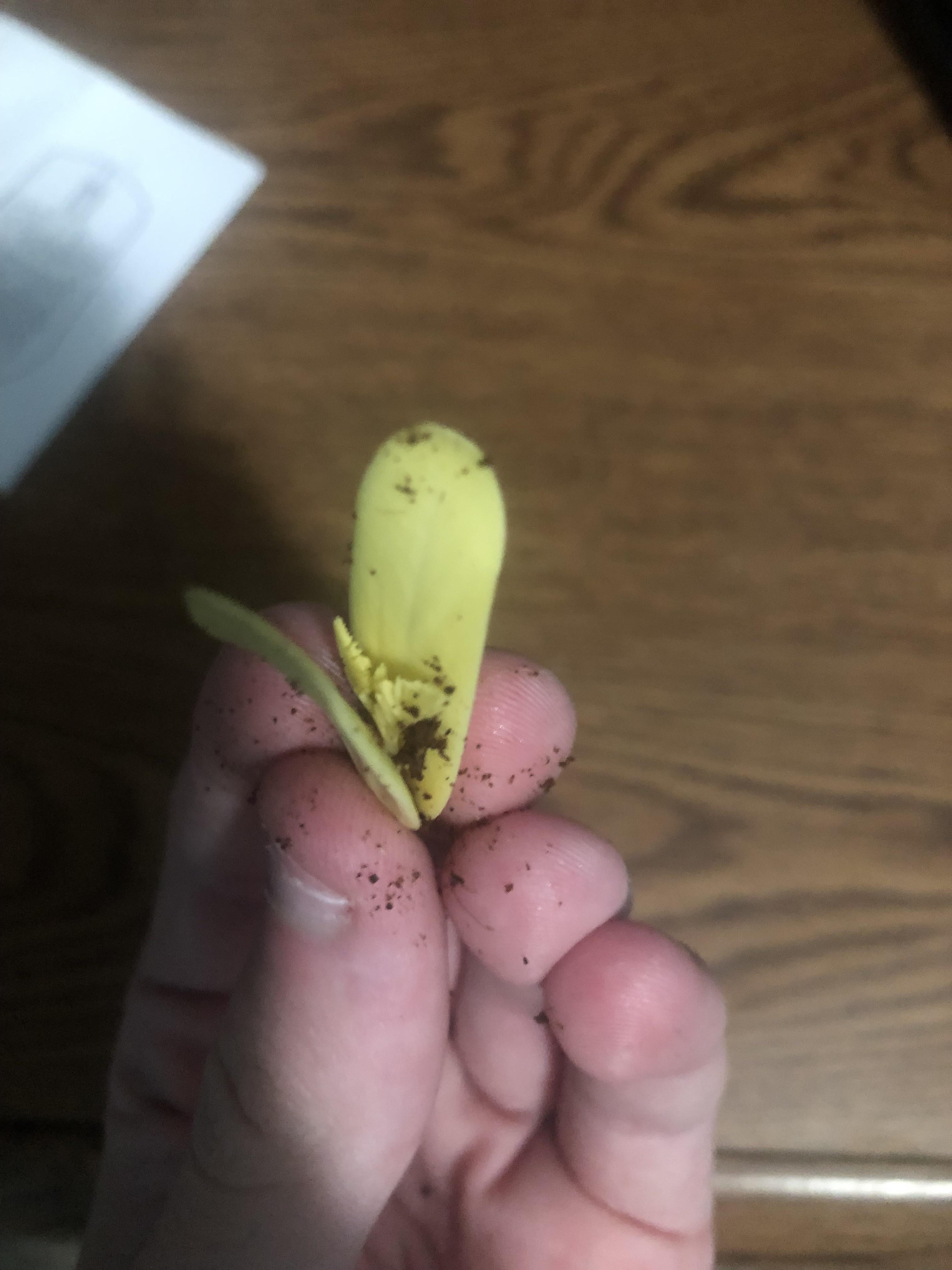 現在、炎の木の盆栽(デロニクス・レギア)を育てています(約2週間成長しています)。これは植物とは接続されていない土の下にありましたが、種子に緩く触れていました。これは何ですか?植物について心配する必要がありますか?