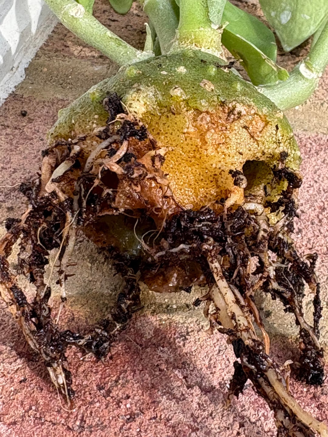 ハリス・ティーターで買ったものはすでに悲しそうなので、植え替えましたが、今日、尾部が柔らかくて少しふにゃふにゃしていることに気づきました。尾部の下部が腐っていました。絶望的ですか?