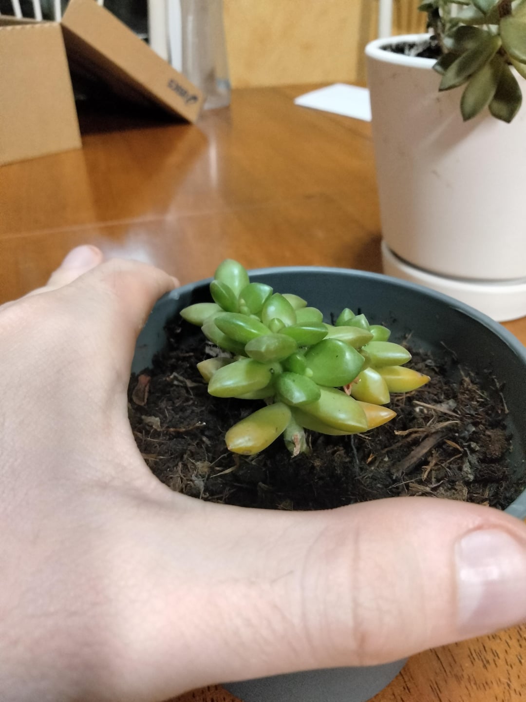 これらはハダニですか?それともただの小さな蜘蛛? 最初は、水かきの大きさとランダムに見えることから、ダニであると推測しました。しかし、彼は他の虫を捕まえたようで、私の植物は健康のようです。 では、ダニ (およびその他の害虫) は、ダニが引き起こす被害とは別に、どうやって特定できるのでしょうか? 3 枚の写真はすべて、同じセダム植物を異なるズームで撮影したものです 秤用の手