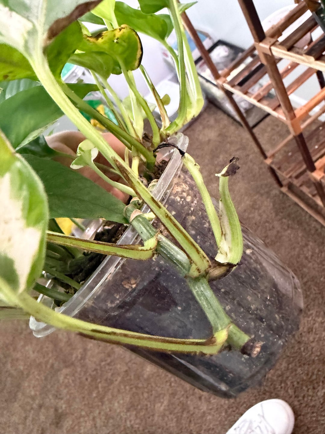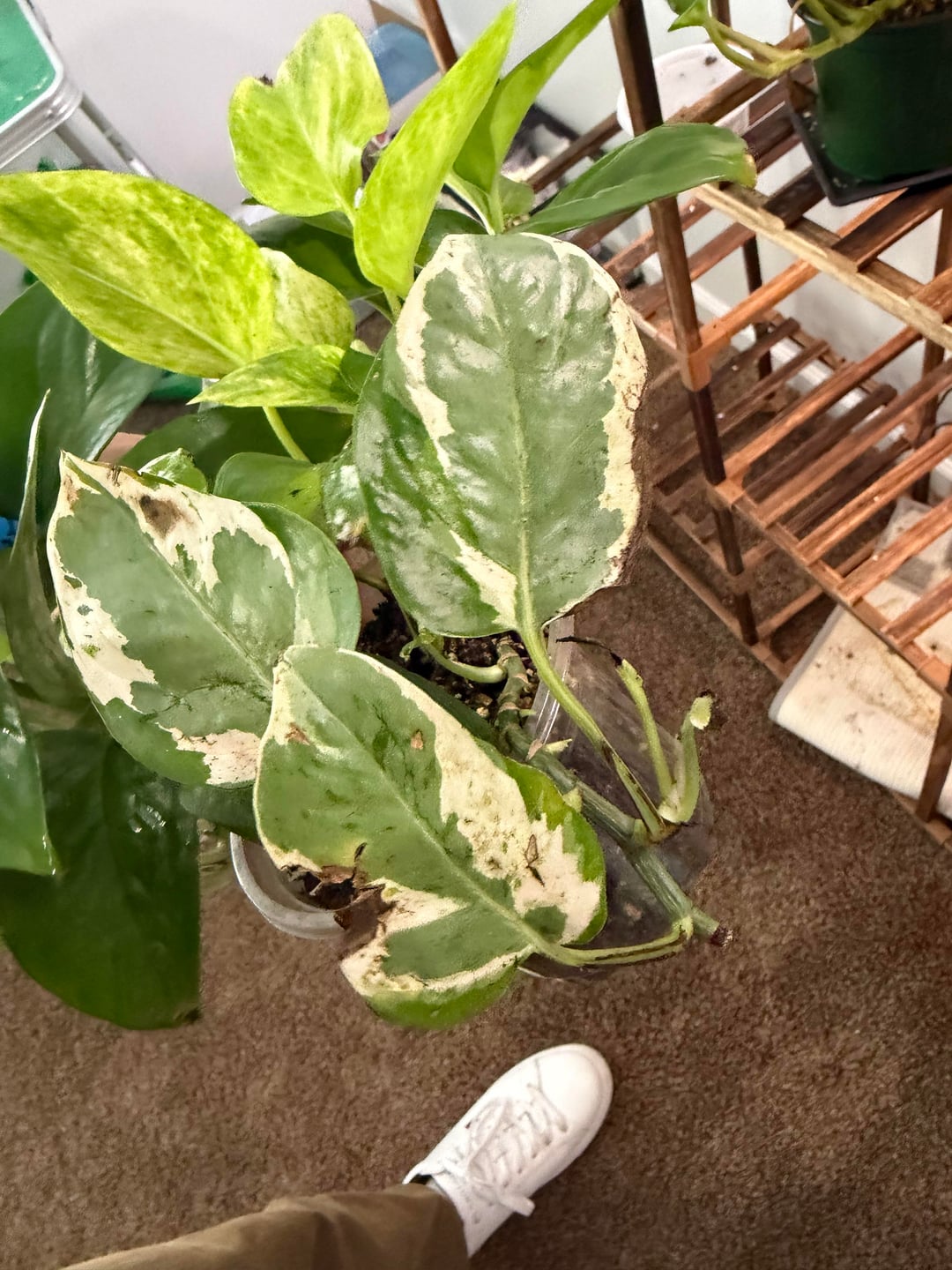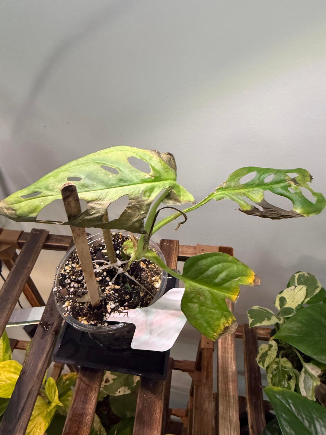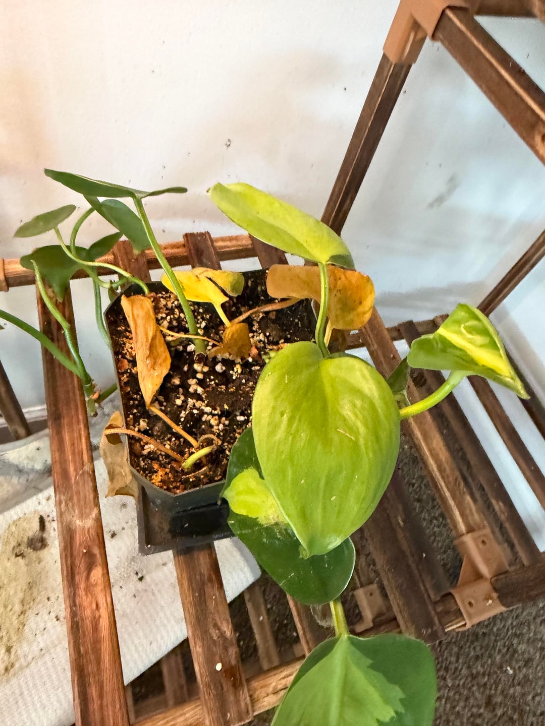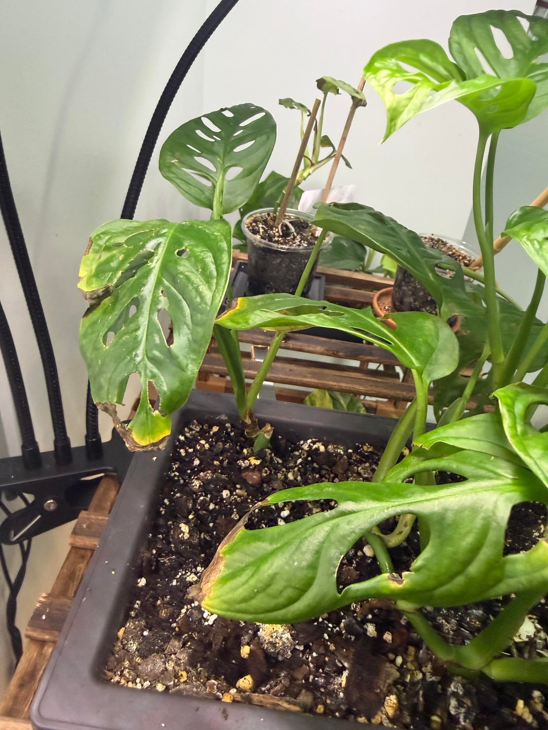 ご覧のとおり、私は主にモンステラとポトスを育てていますが、多くの葉が枯れています。それらの多くは日焼けのように見えますが、そうではないと確信しています(直射日光がなく、最小限の照明が必要です)助けてください。