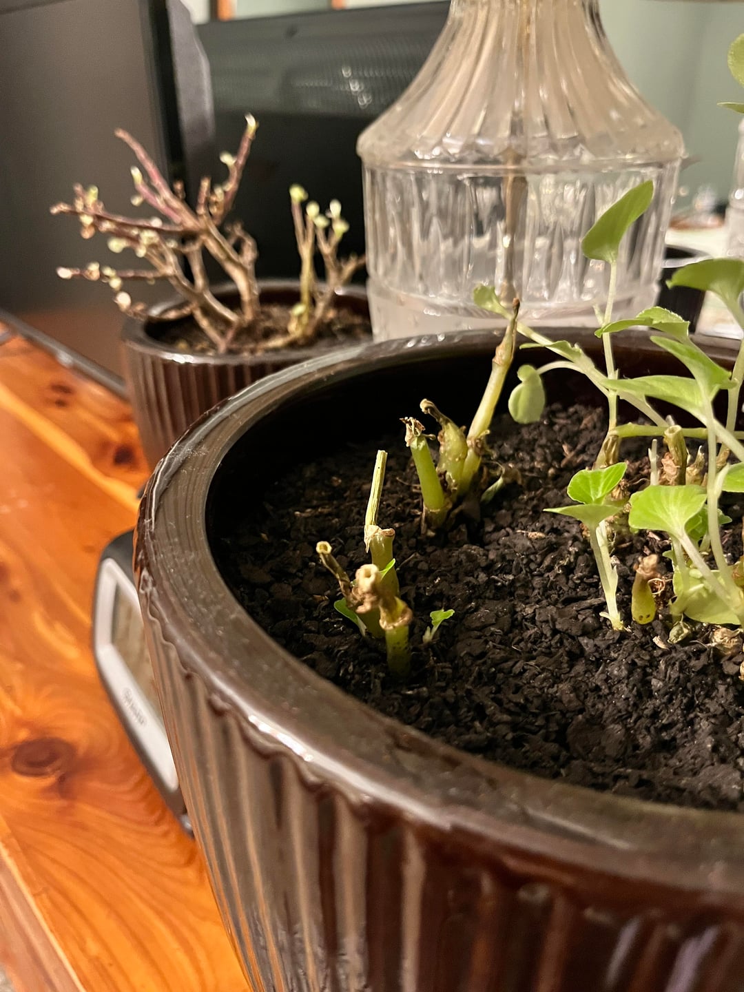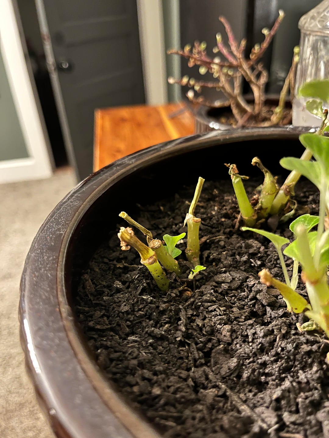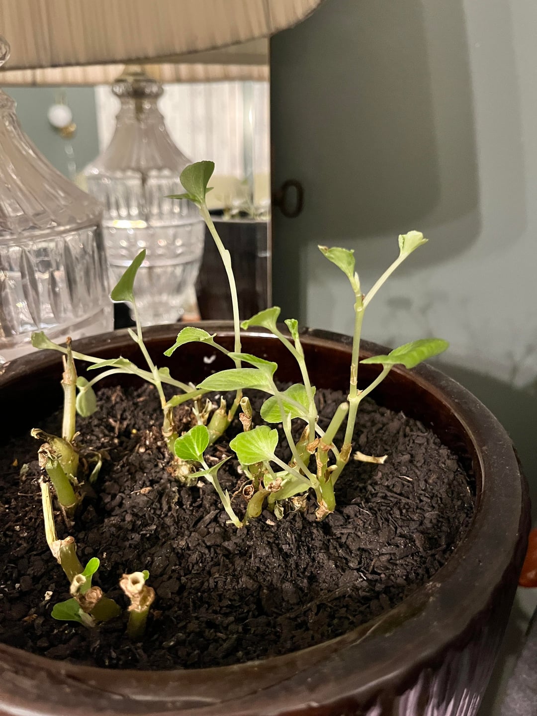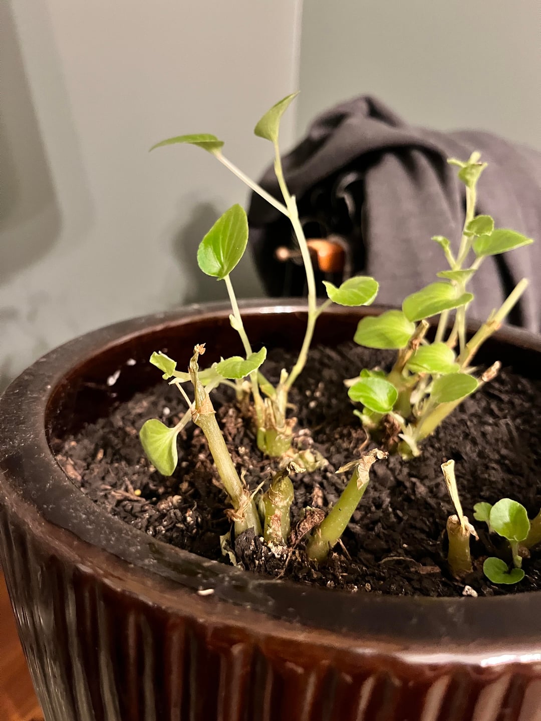 ベゴニアを室内で越冬させようと思っていました。上部の見た目が悪くなってきたので、新しい成長を促すために剪定しようと思い、茎がまだ生きているところを切りましたが、しなびただけで、新しい成長が見られないようです。反対側は問題ないようですが、もっとふさふさにするために切り落としたいのですが、反対側と同じになってしまうのが怖いです。私はほとんど一日中つけているライトの直下に置いています。私は初心者なので、私をローストしないでください🫣 私が間違っていることと、この春に外に出せるように保存する方法を知りたいだけです。隣に翡翠の植物もありますが、葉がうまく成長していません。それが誰かに何が間違っているのかについてもっとアイデアを与えてくれれば幸いです